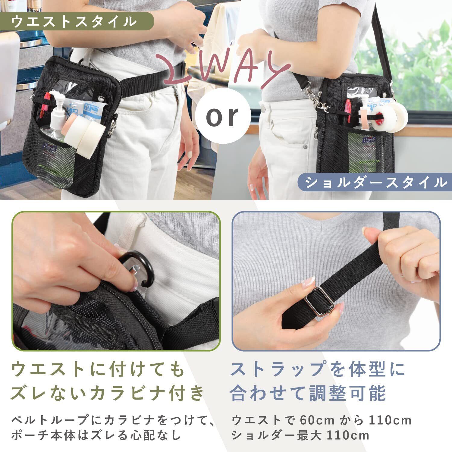 【特価商品】YUKANO たくさんはいるNursing pocket ナースポーチ オーガナイザー ナースポシェット 看護師 ナース ポーチ エプロンバッグ 介護 介護士 ウエストポーチ ショルダーポーチ 2way | 無意味ステッカー