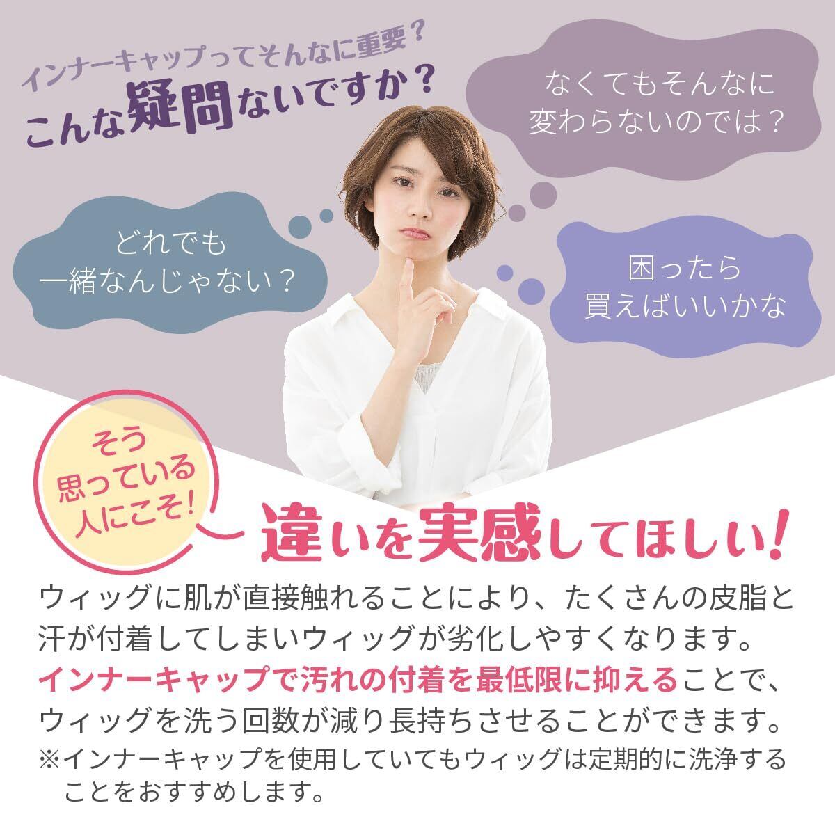 【ウィッグが長持ち】インナーキャップを着用してからウィッグを被ると、皮膚に直接ウィッグが触れることがありませんので、皮脂や汗が付着しにくくなります。ウィッグを汚れから守ることで、洗う回数も減りますので、長持ちさせることができます。※インナーキャップを使用していてもウィッグは定期的に洗浄してください。