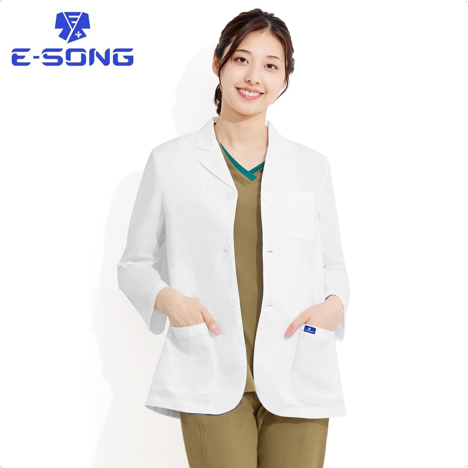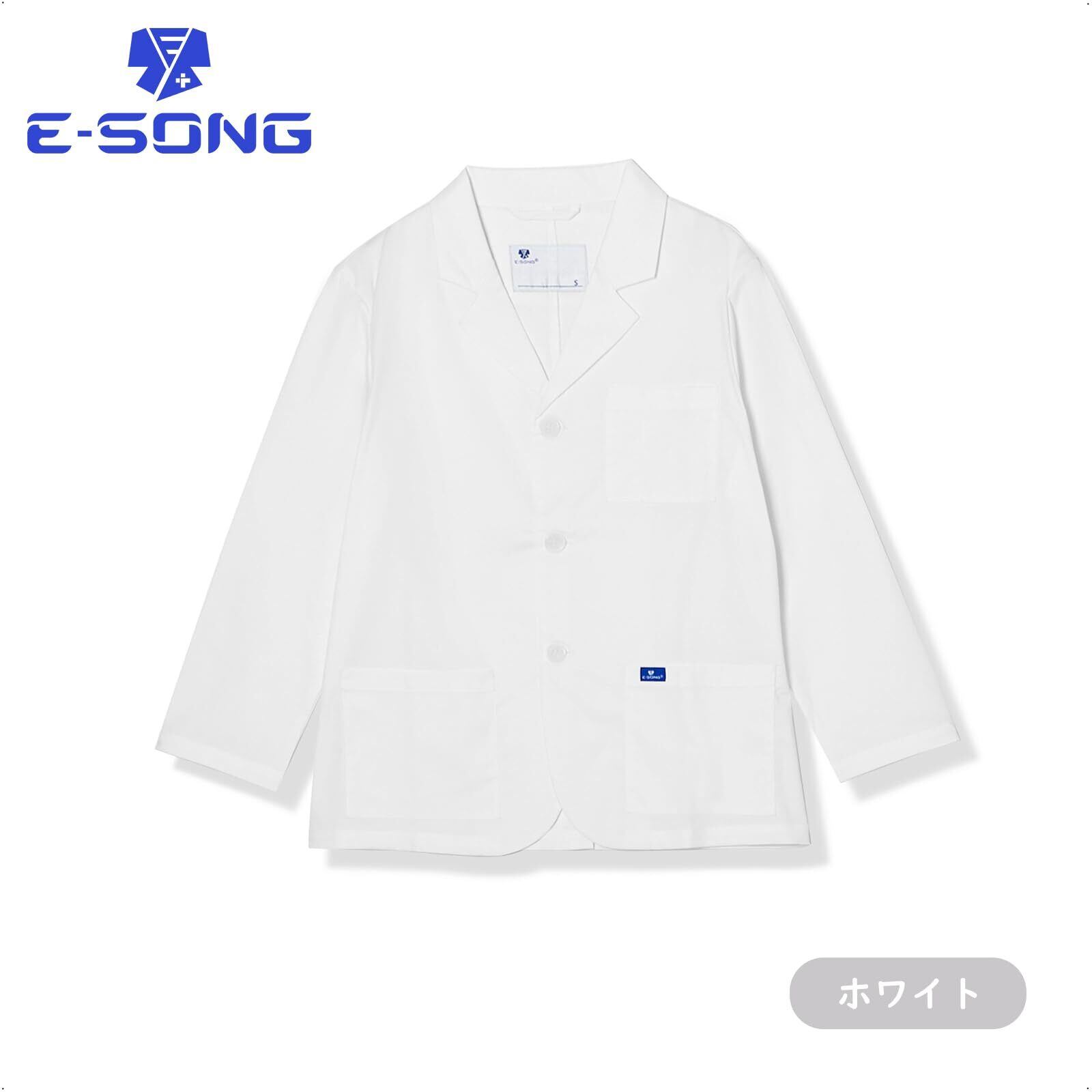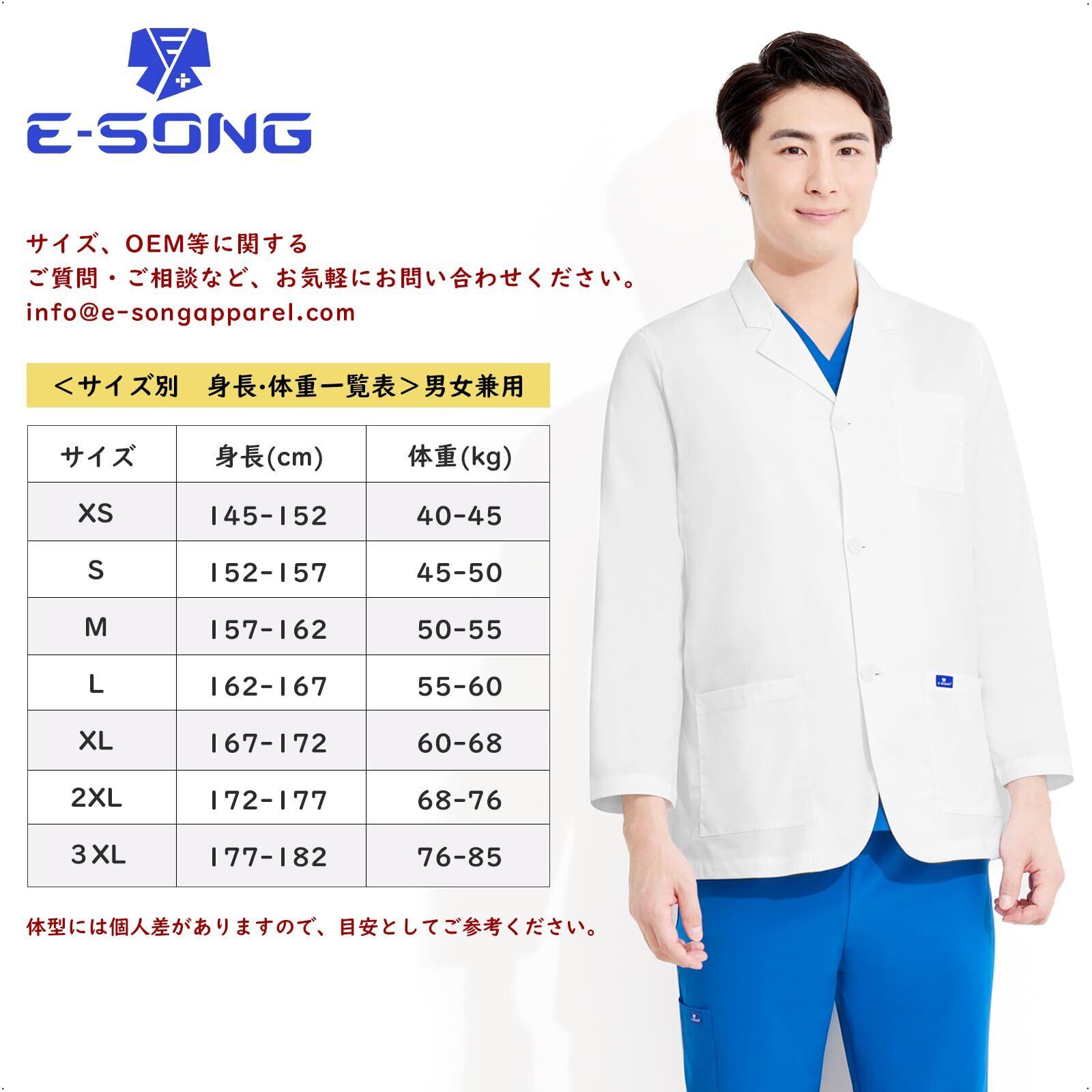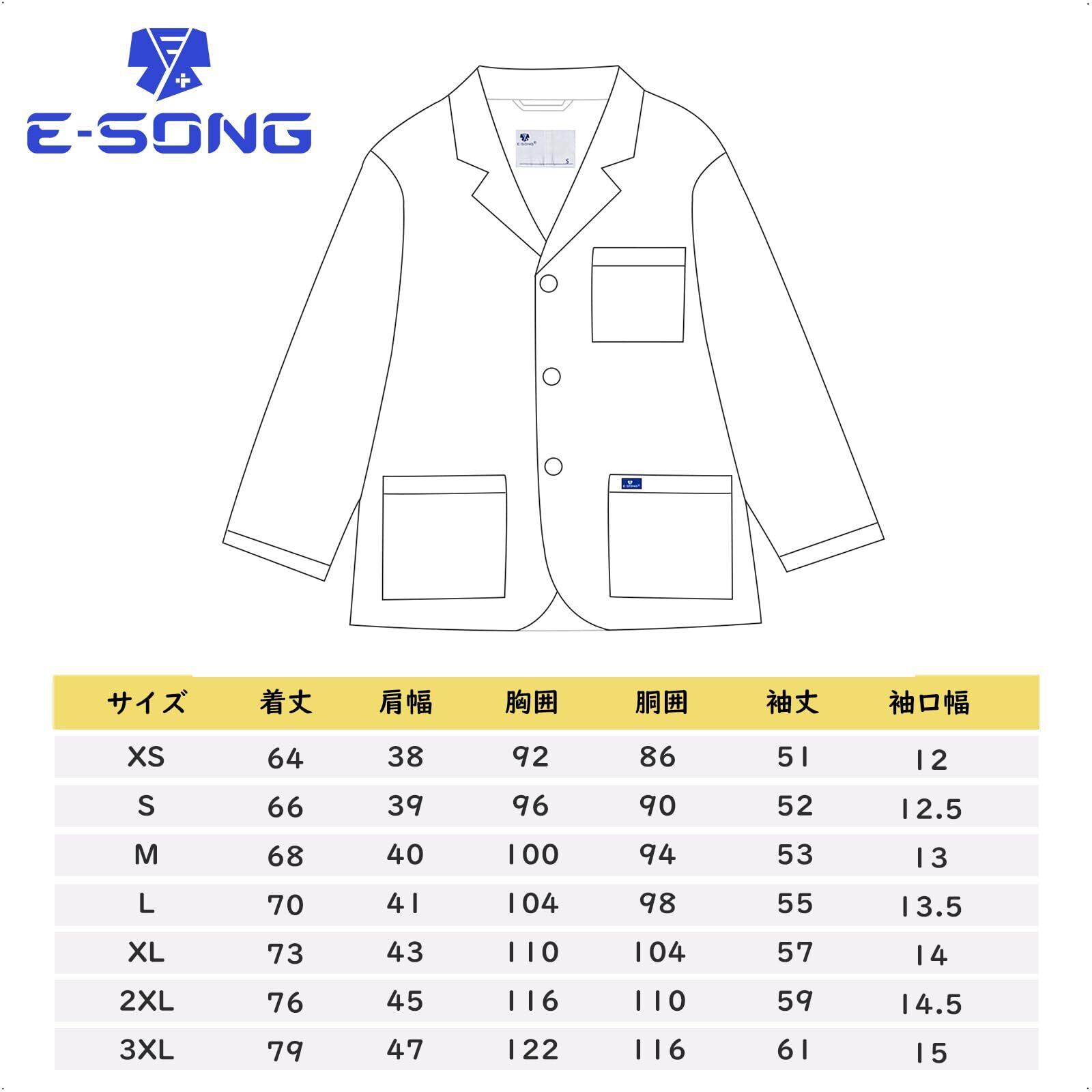 [E-SONG] 男女兼用 白衣 ジャケット ショートコート 9分袖 柔らかい肌触り 綿高率素材 工業洗濯可能 医療 ドクターコート093