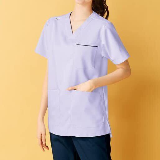 [アンファミエ] ナーススクラブ ストレッチギャバ 制電 パイピング レディース メンズ 帯電防止 形態安定 両脇ポケット ループ付き