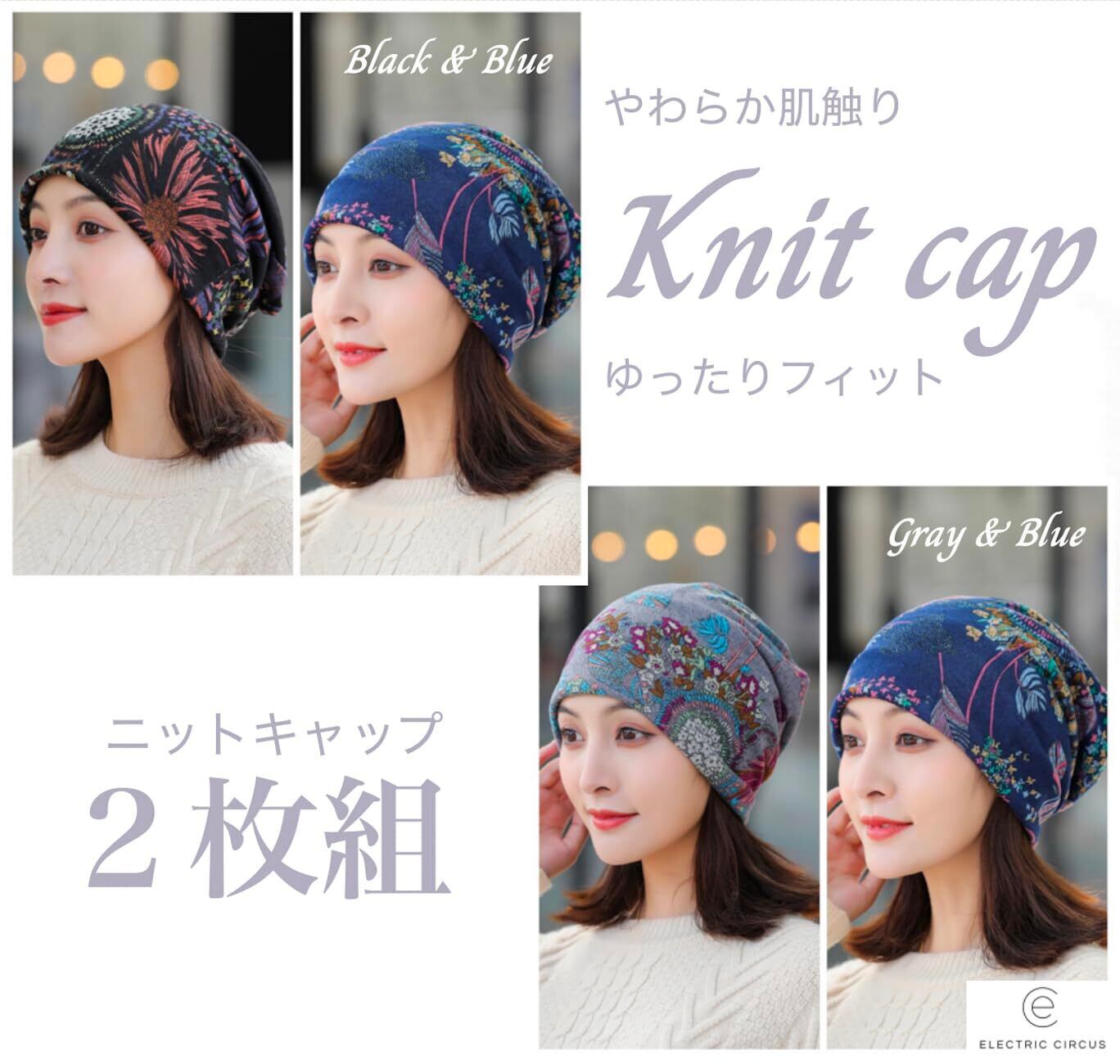 [Electric Circus] ニットキャップ 帽子 2枚組 医療用帽子 キャップ ケア帽子 ワッチキャップ ニット帽 レディース