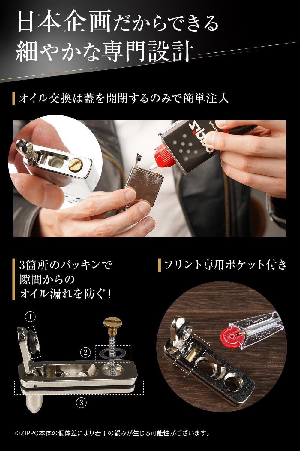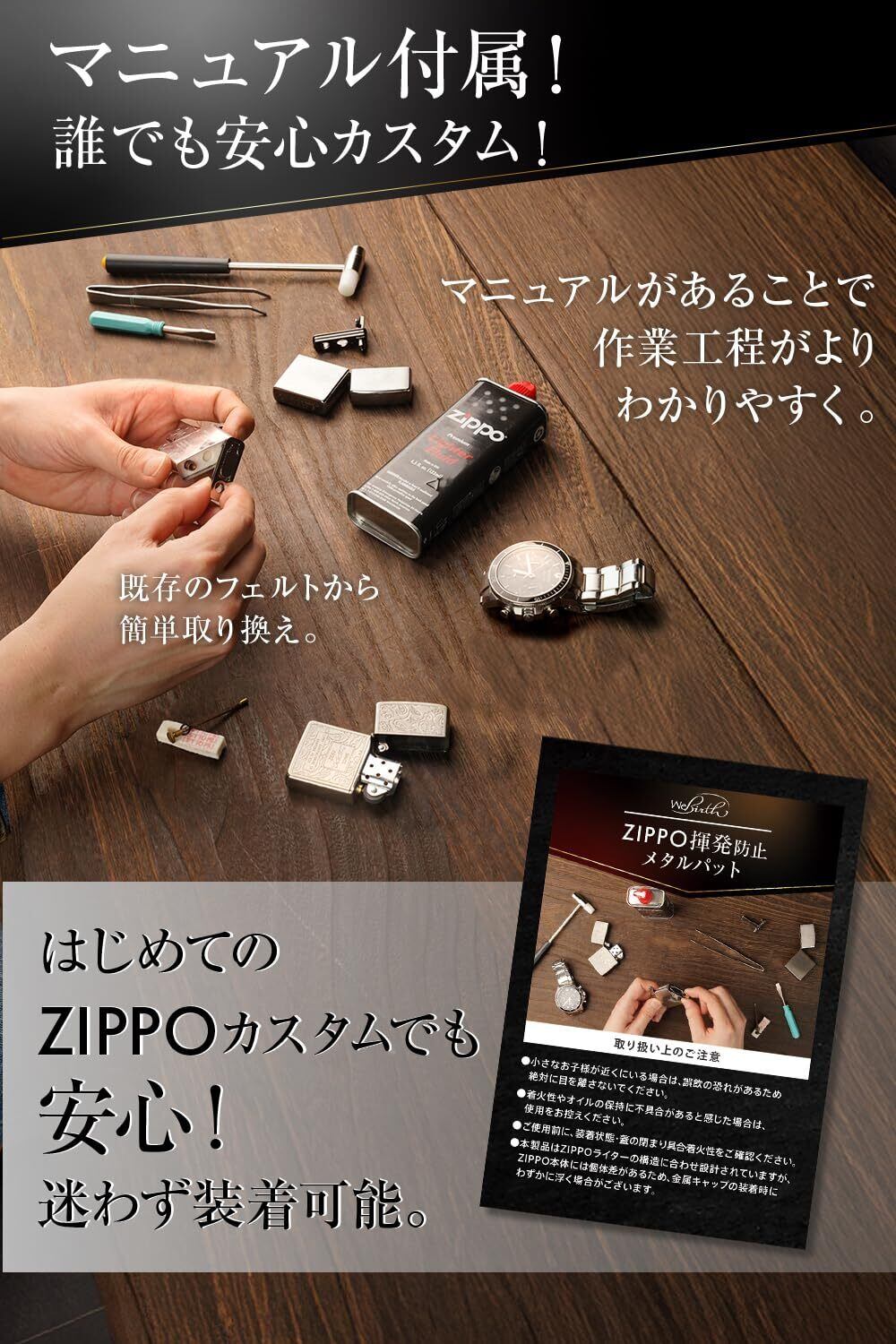 【安心の日本企業設計】細部までこだわったジッポ メタルパッドは、日本企業が設計・検品した高品質。zippo 揮発防止を目的とした使いやすい形状で、取扱説明書付きなので初めてのジッポ オイル揮発防止カスタムにも安心です。