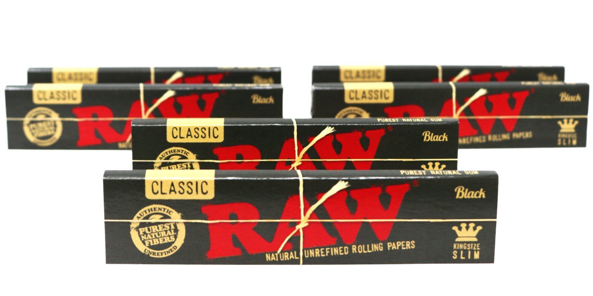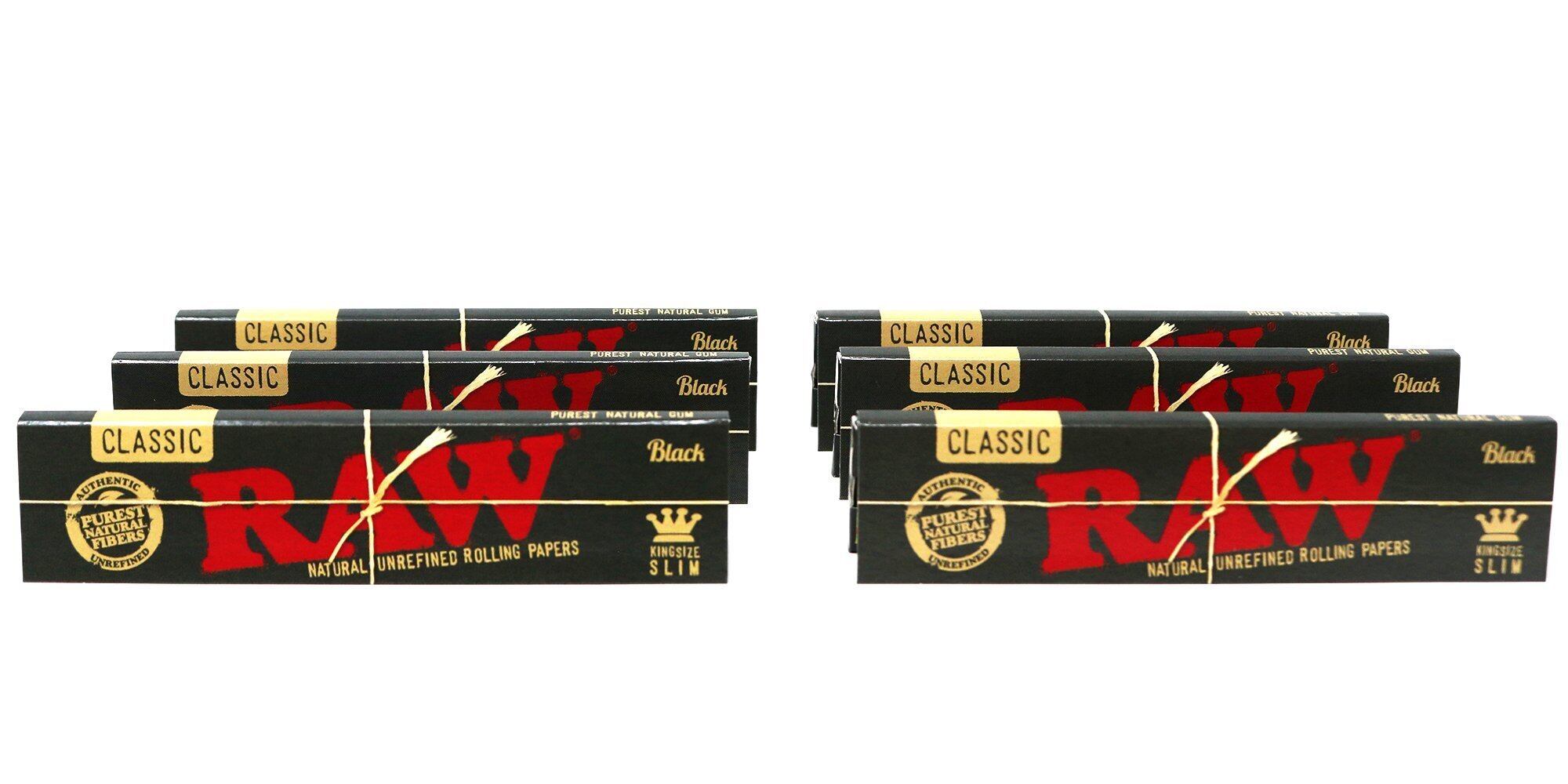 RAW クラシック ブラック キングサイズ スリム ナチュラル 未精製 超薄型 110mm ローリングペーパー (6パック)