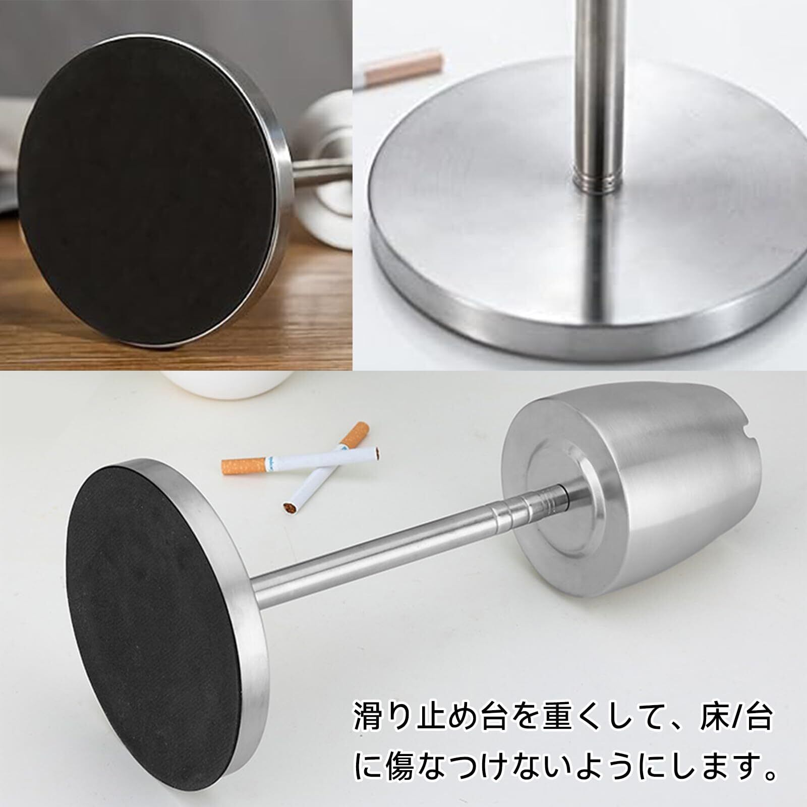 灰皿 スタンド灰皿 ふた付き 伸縮式チューブ 約45cmー75cmに高さおしゃれ ふた付き 調整可能 滑り止め付 防風 臭いが広がりにくい 屋外 室内兼用 密閉 洗いやすい ステンレス