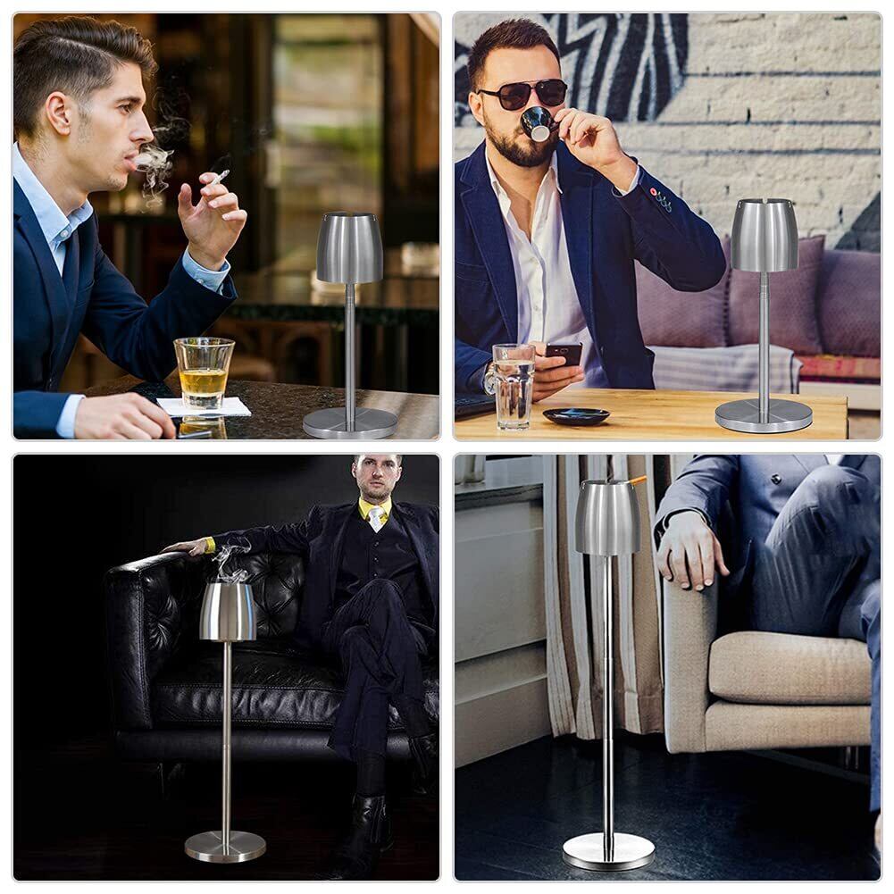 【新着商品】灰皿 スタンド灰皿 ふた付き 伸縮式チューブ 約45cmー75cmに高さおしゃれ ふた付き 調整可能 滑り止め付 防風 臭いが広がりにくい 屋外 室内兼用 密閉 洗いやすい ステンレス | 無意味ステッカー
