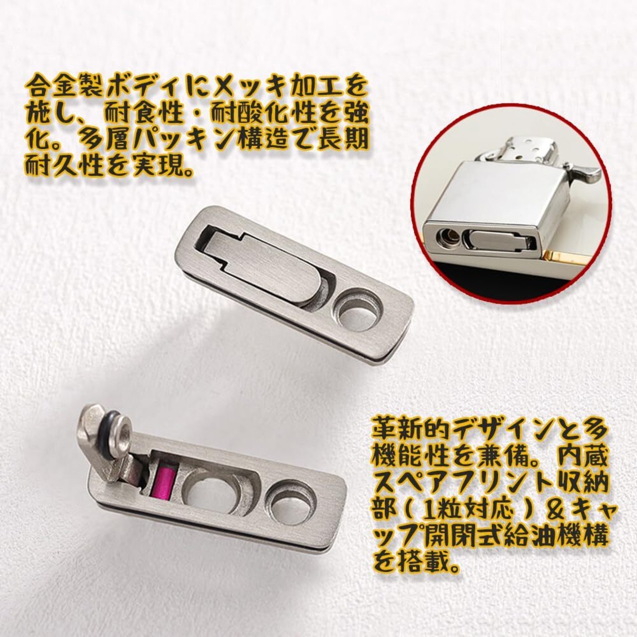 専属装備付属|火石×3+高密度綿パッド同梱 電鍍銀ベース本体に、耐摩耗火石と撥油処理済み綿パッドをサービス品として追加。メンテナンス頻度を最大60%低減する長期耐久設計。