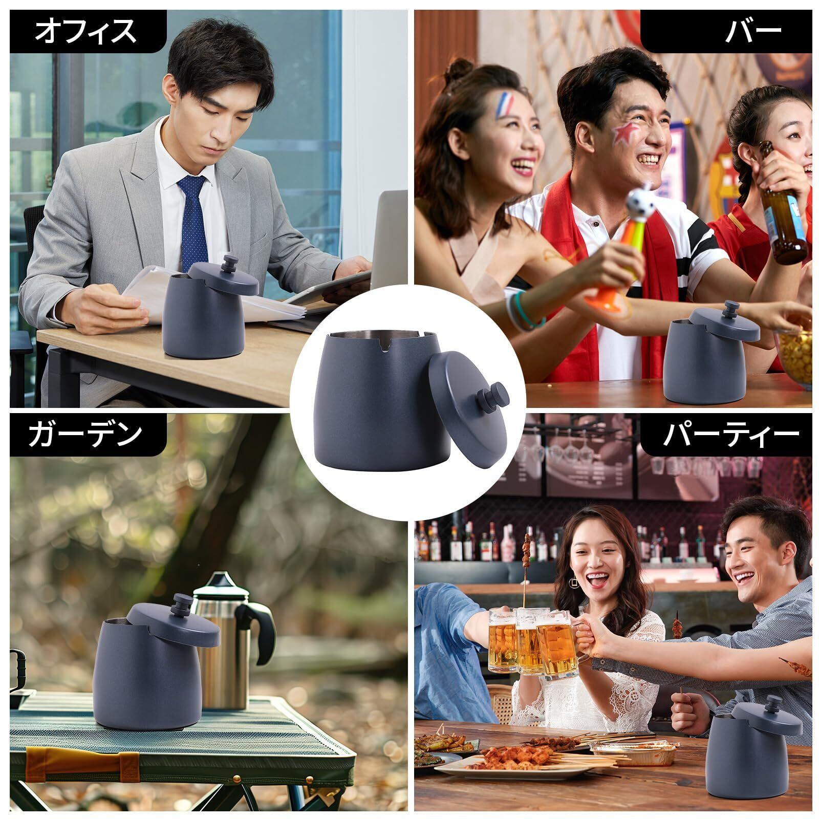 多用途: 蓋付きの灰皿は煙を効果的に封じ込め、心地よい雰囲気を保ちます。屋内 (自宅、オフィス、バー、カフェ、ホテル、レストラン) と屋外 (庭、パーティー、ビュッフェ、公園) の両方の環境に最適です。