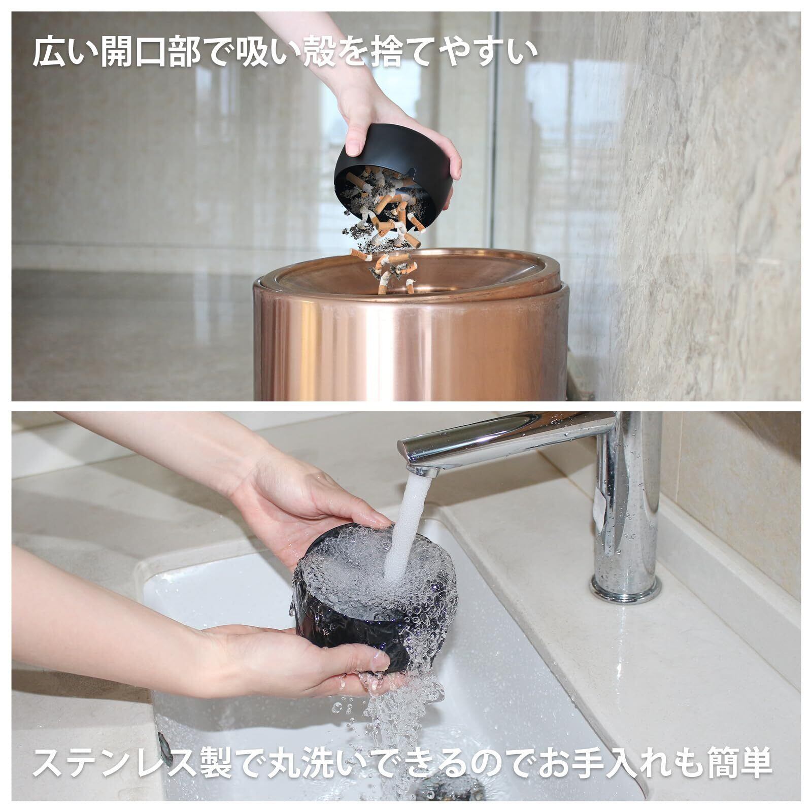 Yinnhom 灰皿 蓋付き 卓上灰皿 吸い殻入れ 煙と匂いが漏れない 滑りとめベース 屋外&室内用 ステンレス製(M ブラック)