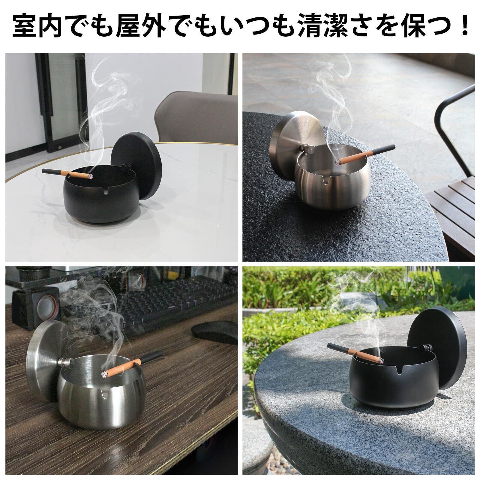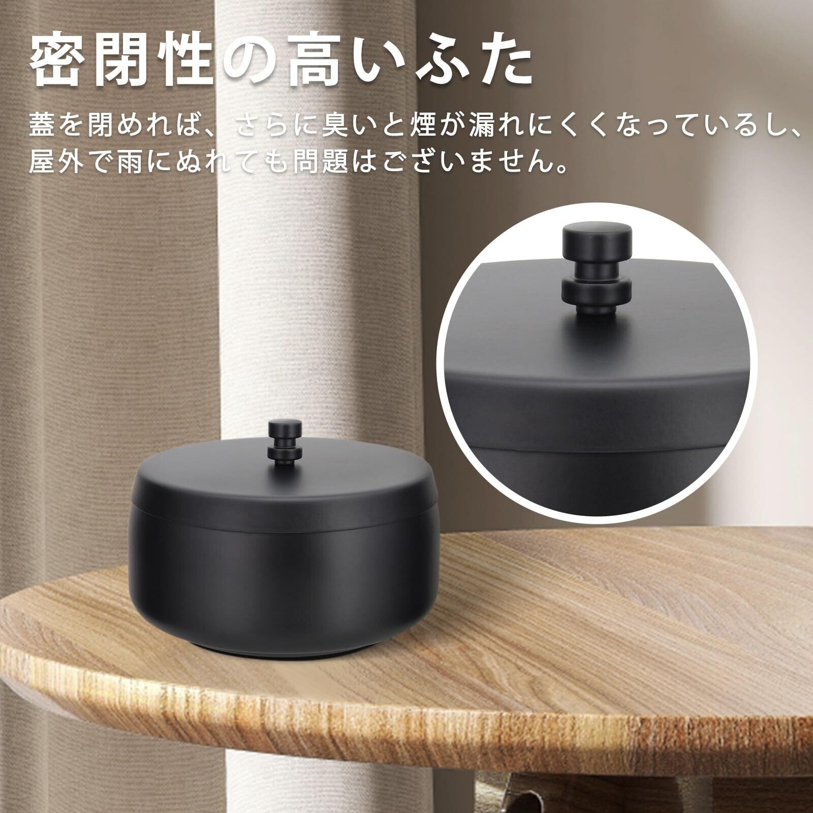 Perphin 灰皿 蓋付き 密閉 滑りとめ はいざら 屋外 室内 卓上 灰皿 おしゃれ 大容量 ステンレス製(M ブラック)