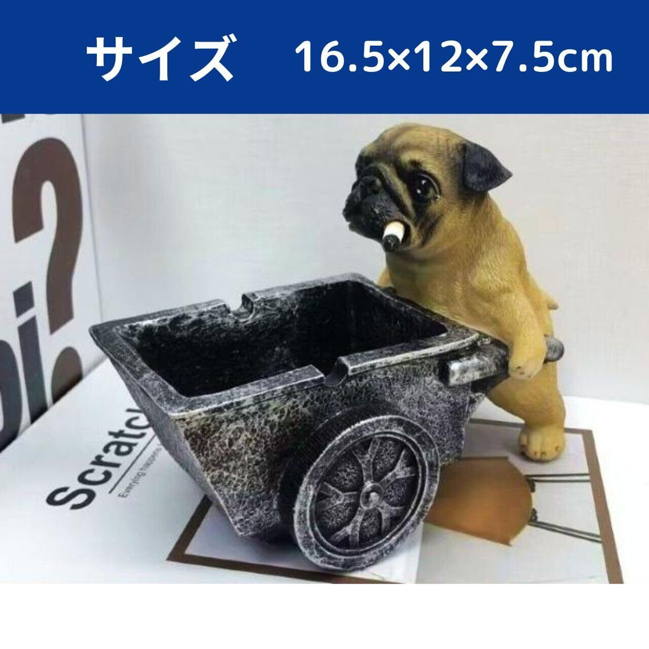 【パグ工事!卓上灰皿】パグ、ブルドック、フレンチブルドックなどの犬好きさんにオススメのテーブル用灰皿です。 【癒されて面白いインテリア雑貨】愛嬌のあるおしゃれなパグのキャラクター灰皿は、誕生日プレゼントやギャグ灰皿、おもしろ誕プレにおすすめです。 【小物トレイや小銭入れなどにも】大容量はいざらは、大きいので小物トレイや小銭入れなどにも最適です。 【サイズ】パグ灰皿 16.5×12×7.5cm