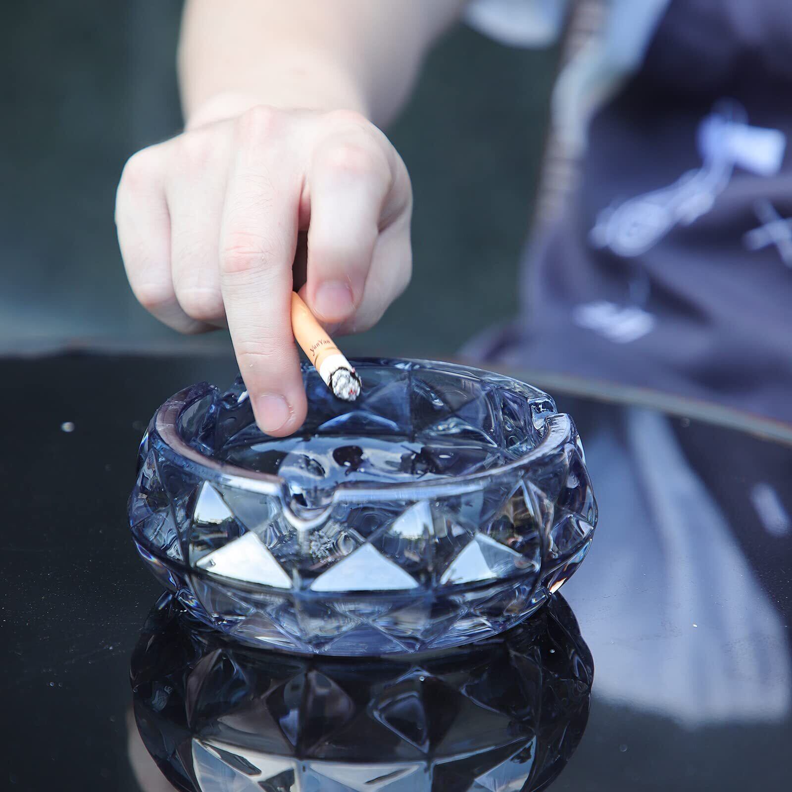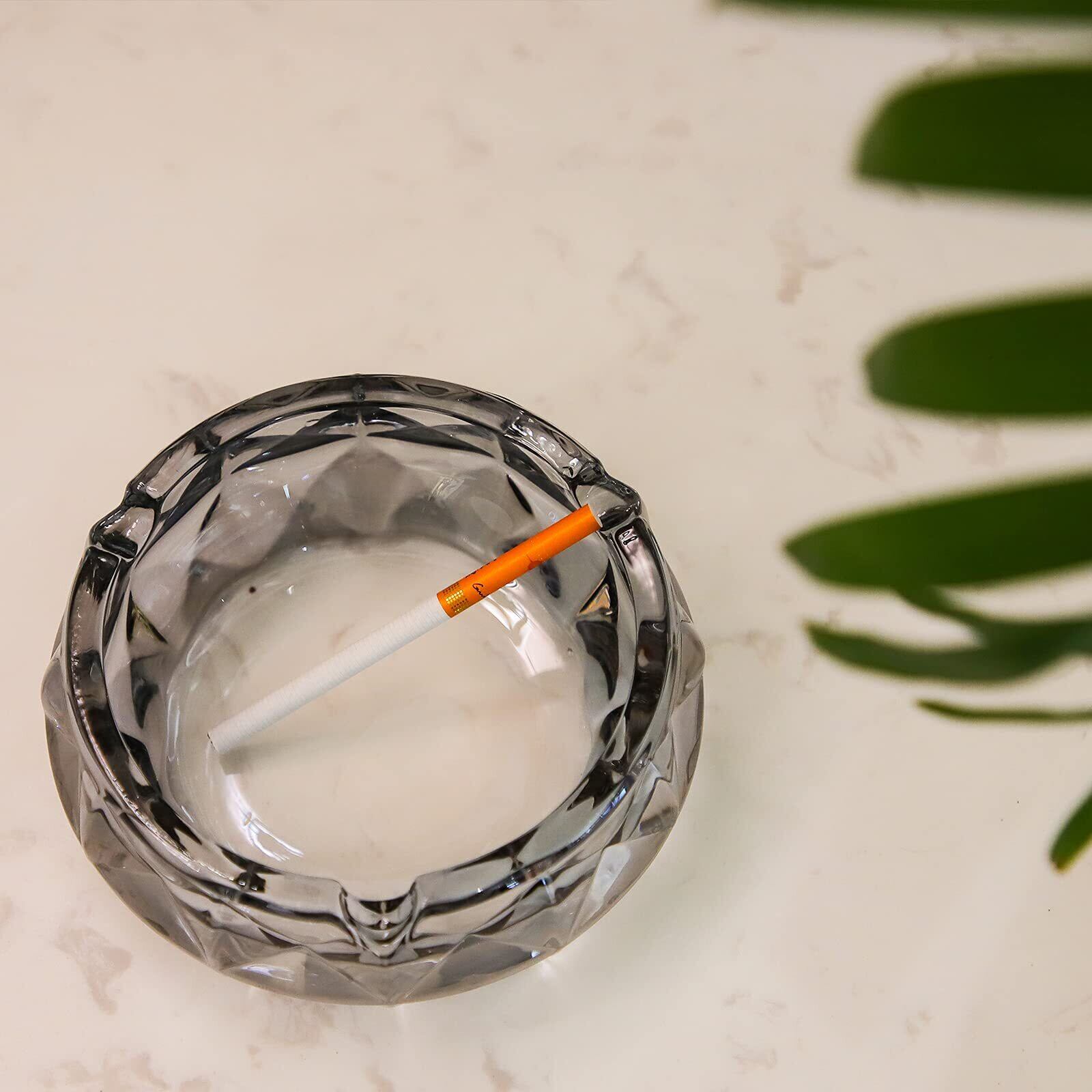TOSSOW 灰皿 ガラス 静音 大容量 卓上 クリスタル 灰皿 洗いやすい 室内 屋外 兼用 おしゃれ灰皿 煙草 インテリアグッズ 防水 防錆 重厚感 めっきプロセス グレー