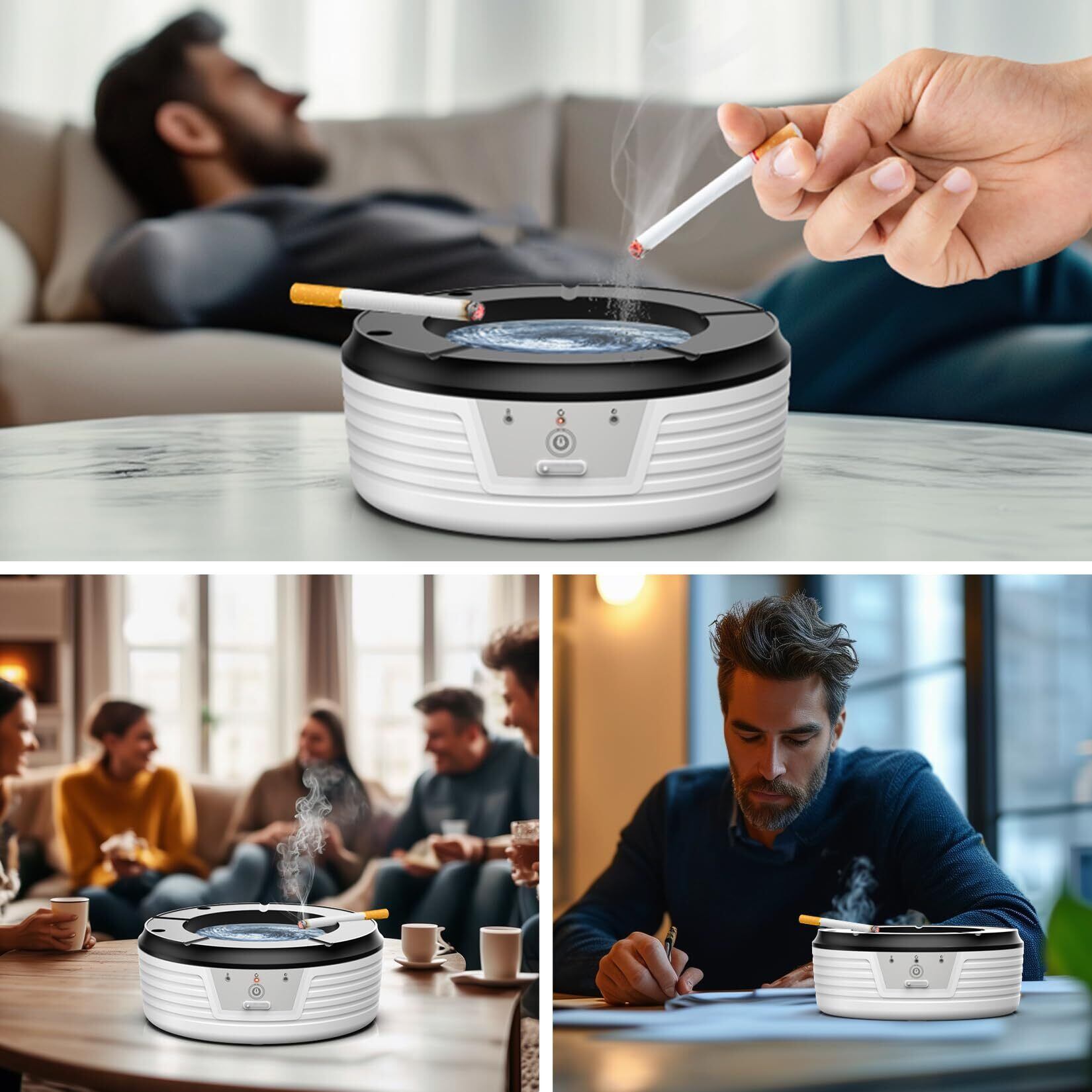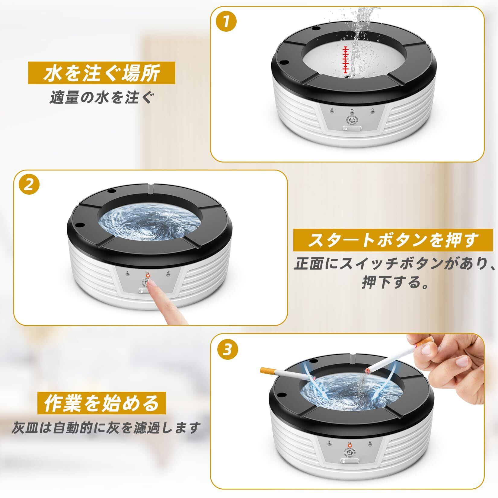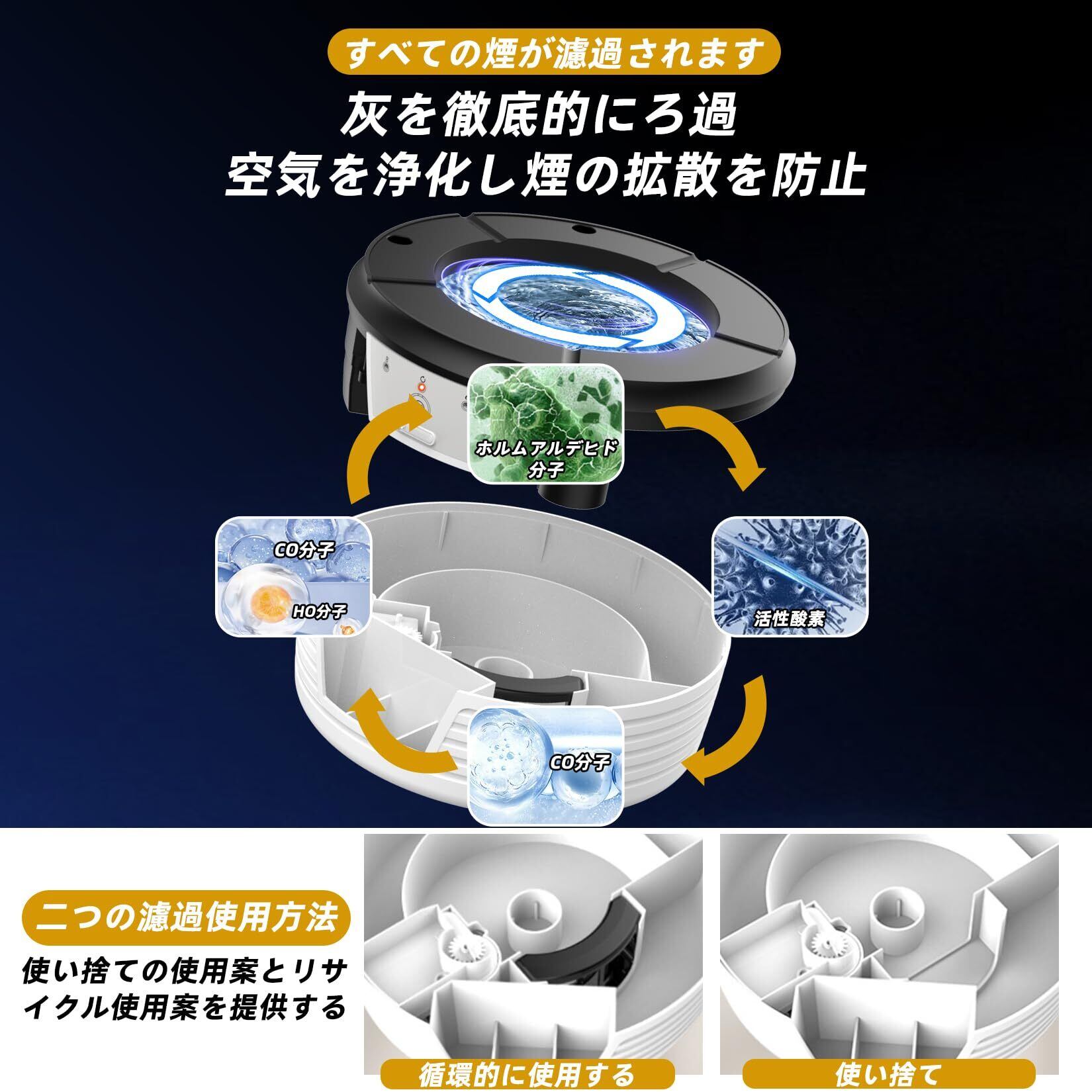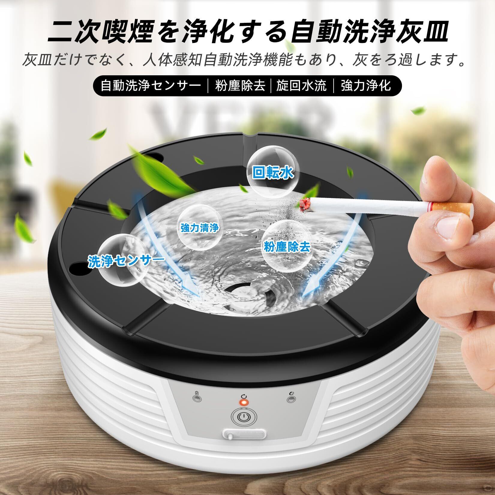自動水洗い 灰皿 灰皿 御洒落 灰が飛ばない灰皿 高性能活性炭フィルター日本語説明書付き クリーンで快適な喫煙体験を提供する