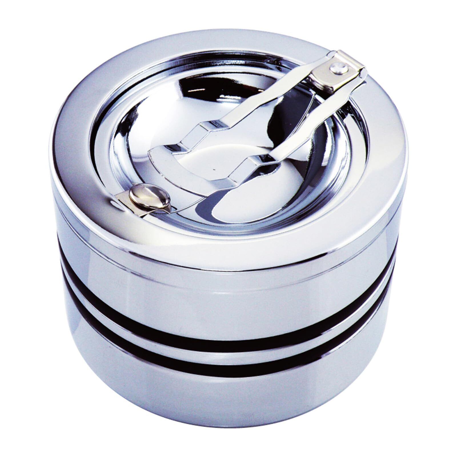 ペンギンライター 灰皿 卓上 蓋付き おしゃれ 大きい 大容量 直径10.5cm 喫煙所 クロームライン2 プッシュ灰皿 シルバー 908120