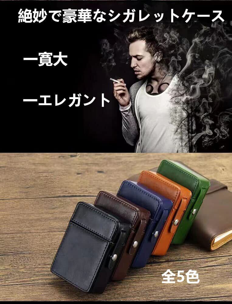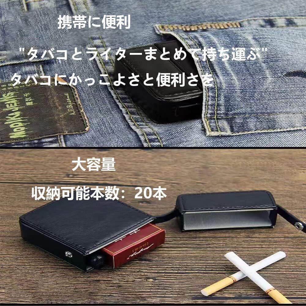[JBSHOP] シガレットケース 革 20本 ライター収納 大容量 箱入れタイプ ライターポケット付き 破損防止 防水 ファッション紳士 ポータブル ポケット たばこ 男女兼用