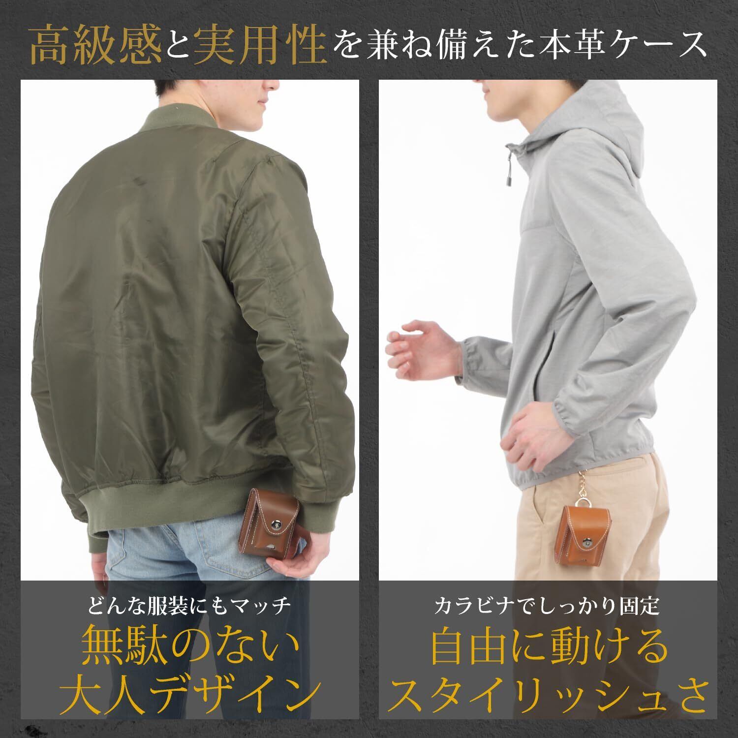 ZRICCOY 【日本ブランド】 タバコケース シガレットケース シガーケース タバコ入れ ZIPPO収納 ライターケース レザー 本革 カラビナ付き メンズ レディース (ダークブラウン)