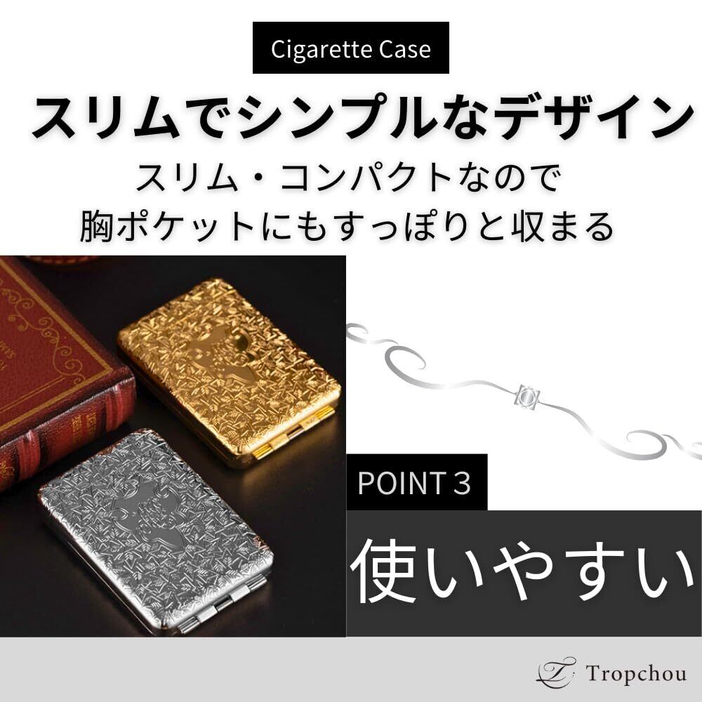 【スリムでシンプルな使いやすいデザイン】 落ち着いた色合いとデザインが魅力的なメタルタイプの煙草ケース。シンプルで品のあるデザインはカジュアルにもフォーマルにもぴったりです。スリム・コンパクトなので胸ポケットにもすっぽりと収まります。持ち運びに便利です。