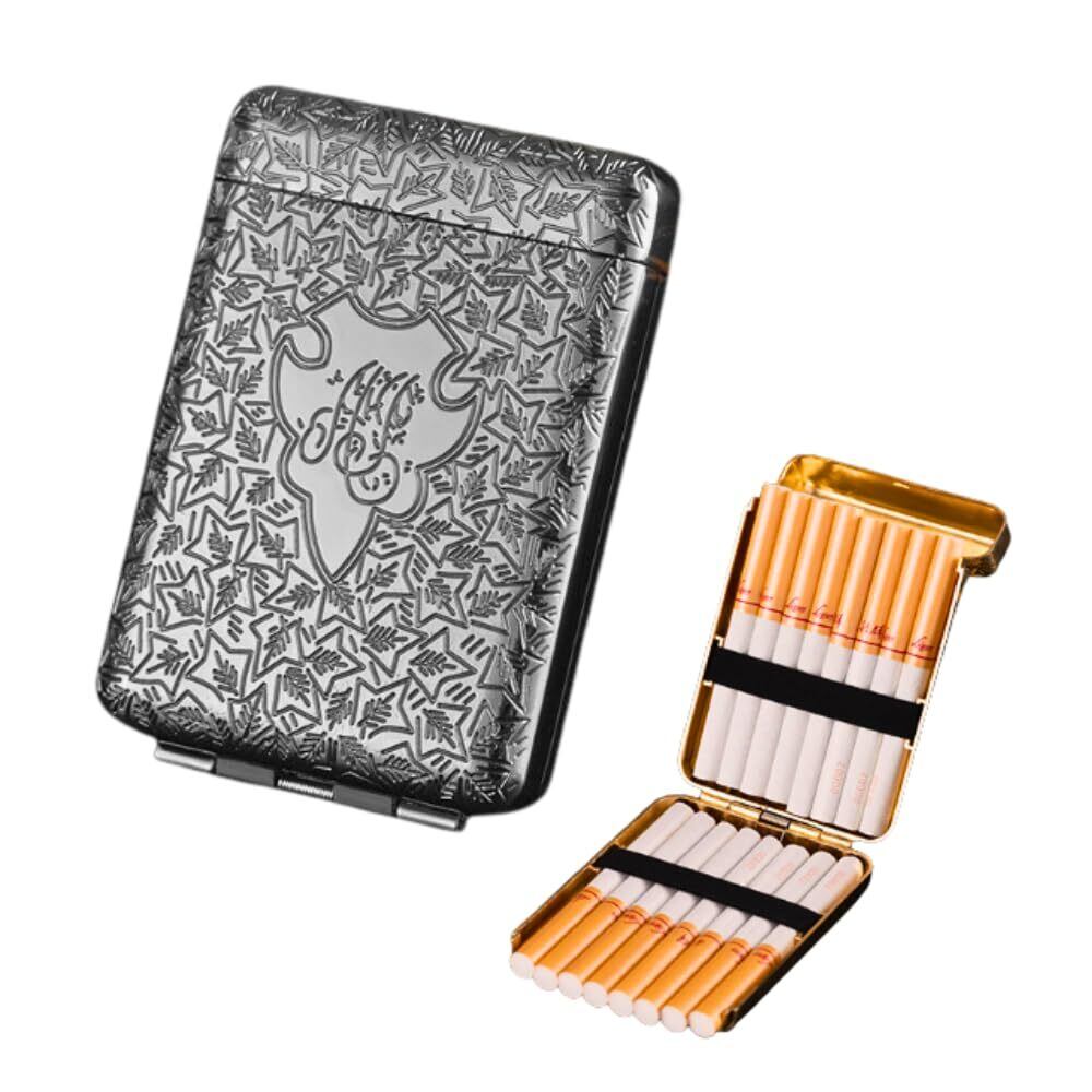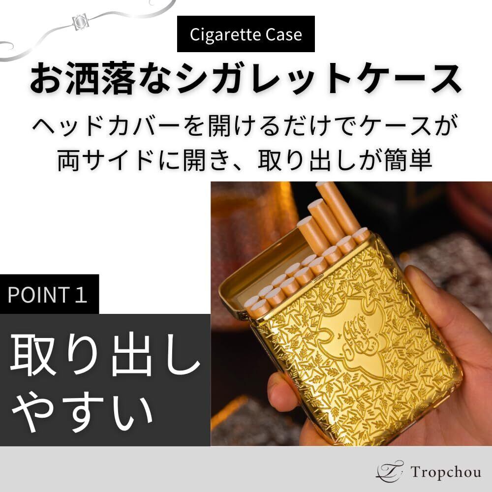 【取り出しやすいお洒落で丈夫なシガレットケース】 ヘッドカバーを開けるだけでケースが両サイドに開きます。大きく開くので煙草の取り出しが簡単で便利です。亜鉛合金ボディは頑丈で耐久性と耐衝撃性のあるケースです。