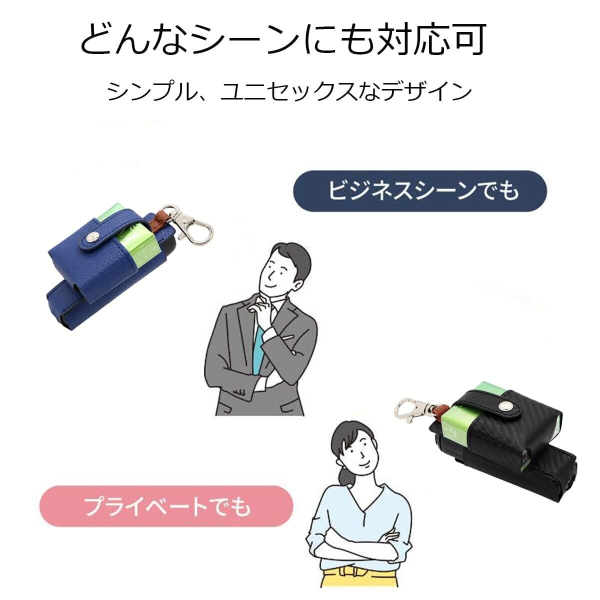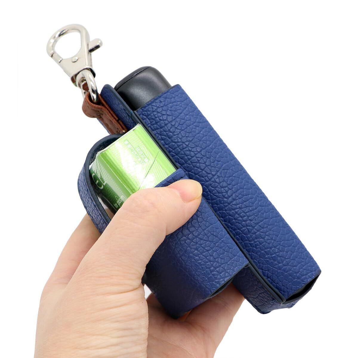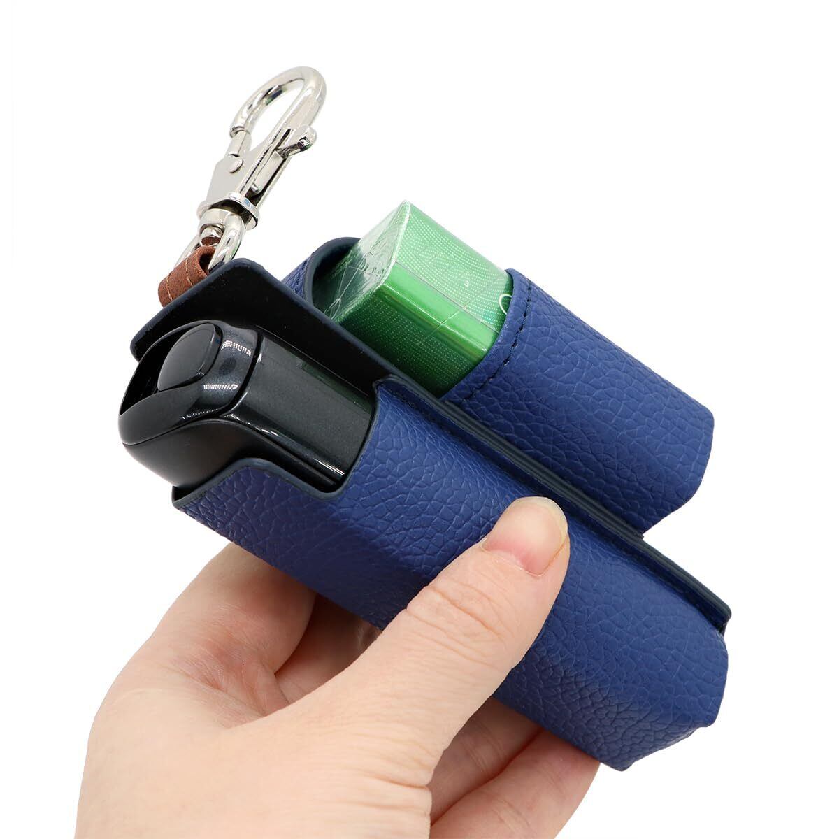 KAZARI プルームオーラに適合するケース Ploom auraに使用できるカバー 持ち運び便利 加熱式たばこ用 ヒートスティック ホルダー まとめて収納 カラビナ付き シガレットケース オシャレ シンプル (ブルー)
