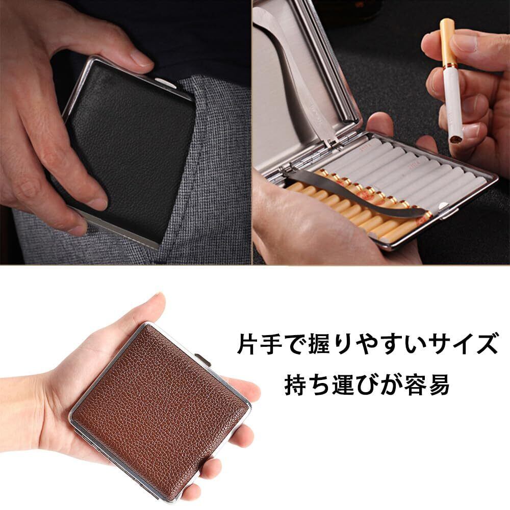 BIUTEFOR タバコケース シガレットケース 革 20本 おしゃれ 4スタイル (ブラック)