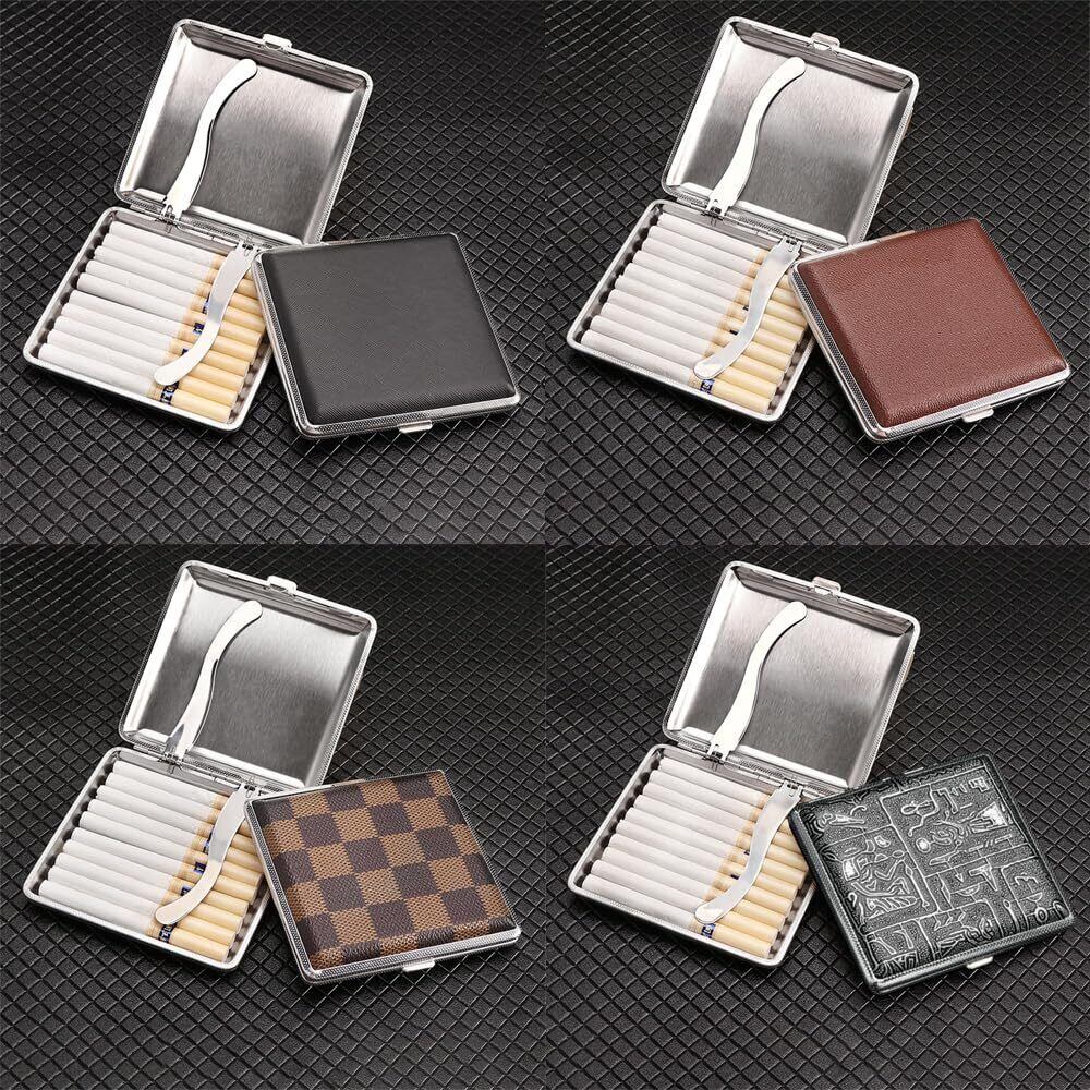【キングサイズ84mm対応】4本のファッションレザーシガレットケースが含まれており、それぞれが20本のタバコを保持することができ、タバコの長さは9センチメートル未満でなければなりません、キングサイズ84ミリメートルとレギュラーサイズ70ミリメートルに適しており、100のを保持することはできません。