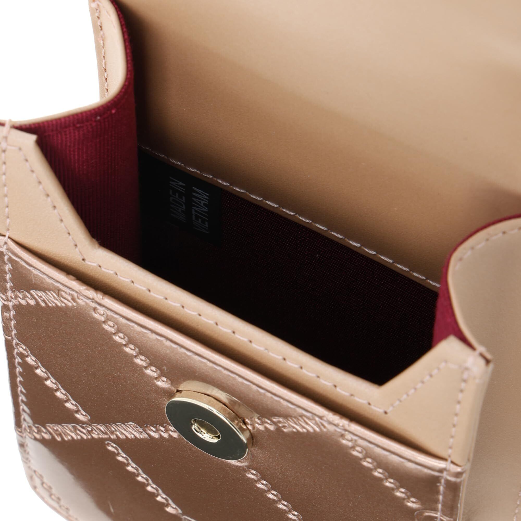 パールのエナメルに定番のチェック柄を型押ししたPINKY鉄板のお財布シリーズ。