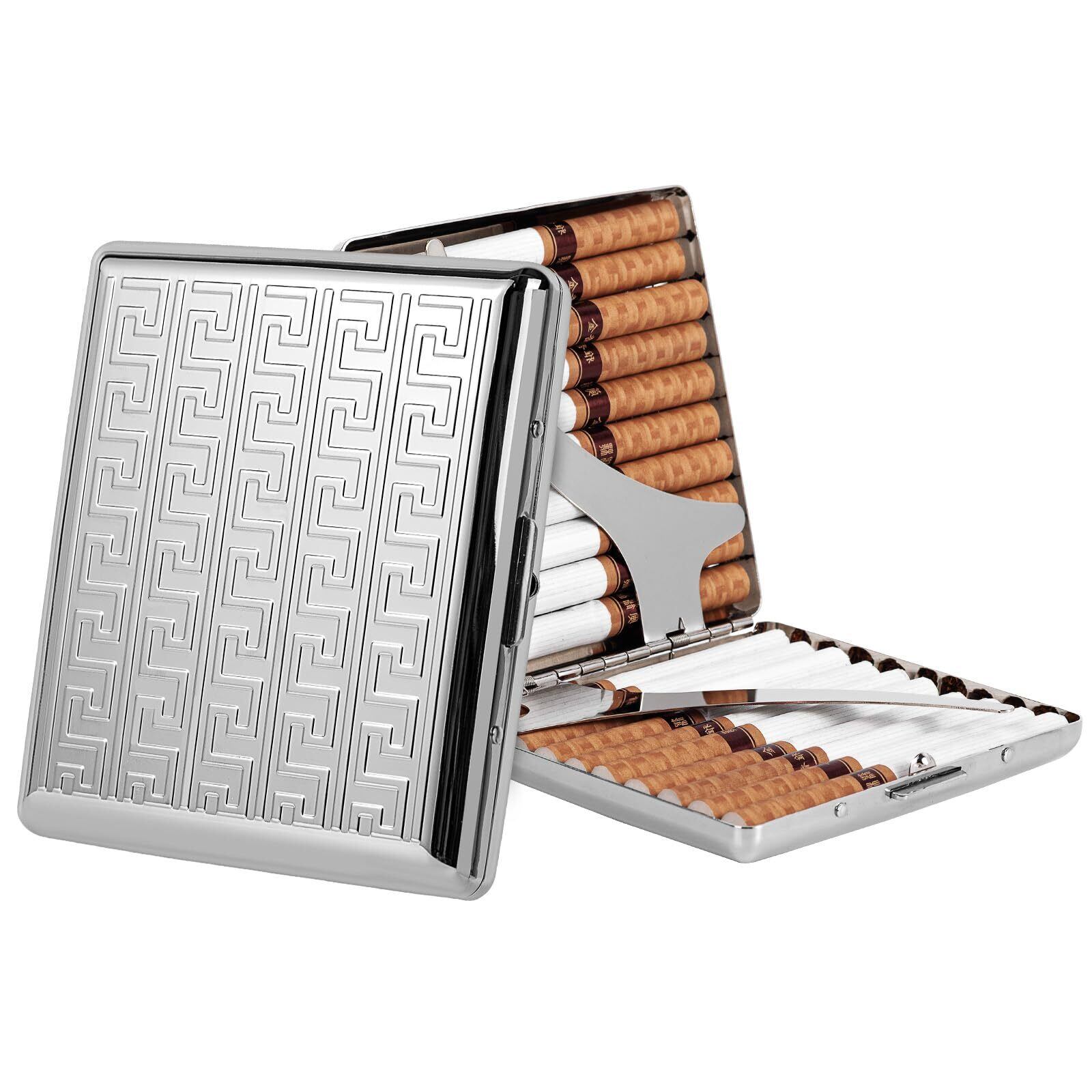 ビンテージ金属タバコ ケース 84 mm 用 (キング サイズ) 20 本、クレジットカード財布 RFID ブロック (ラビリンスシルバー、キングサイズ20個)