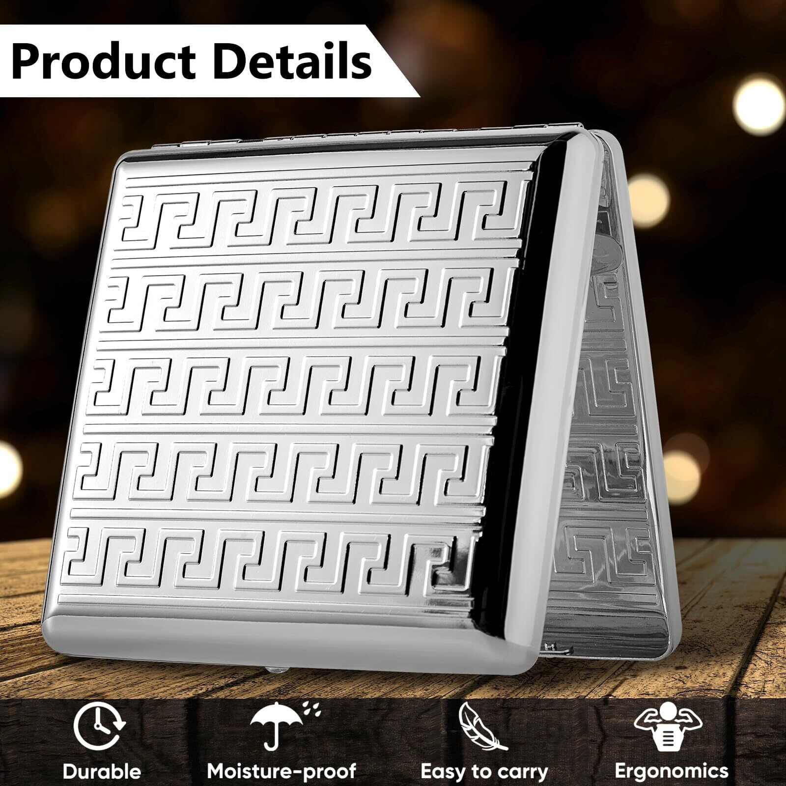 高品質の日本製金属で作られたレトロメタルシガレットケースは、84mmのキングサイズのタバコを安全に保護します。 タバコを安全に収納できるだけでなく、銀行カード、現金、その他の日用品を保管するための理想的なアクセサリーとしても機能します。
