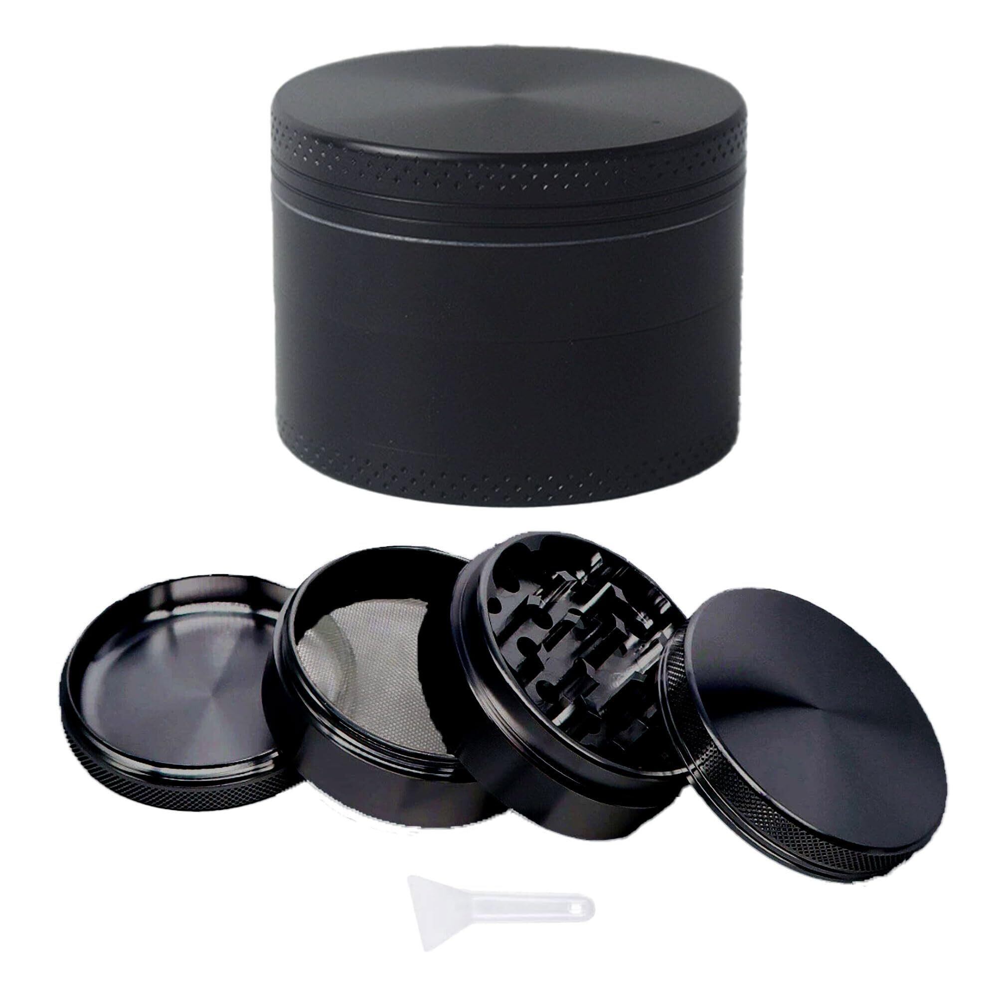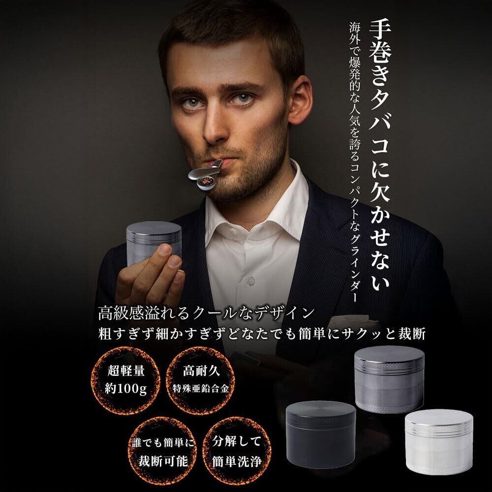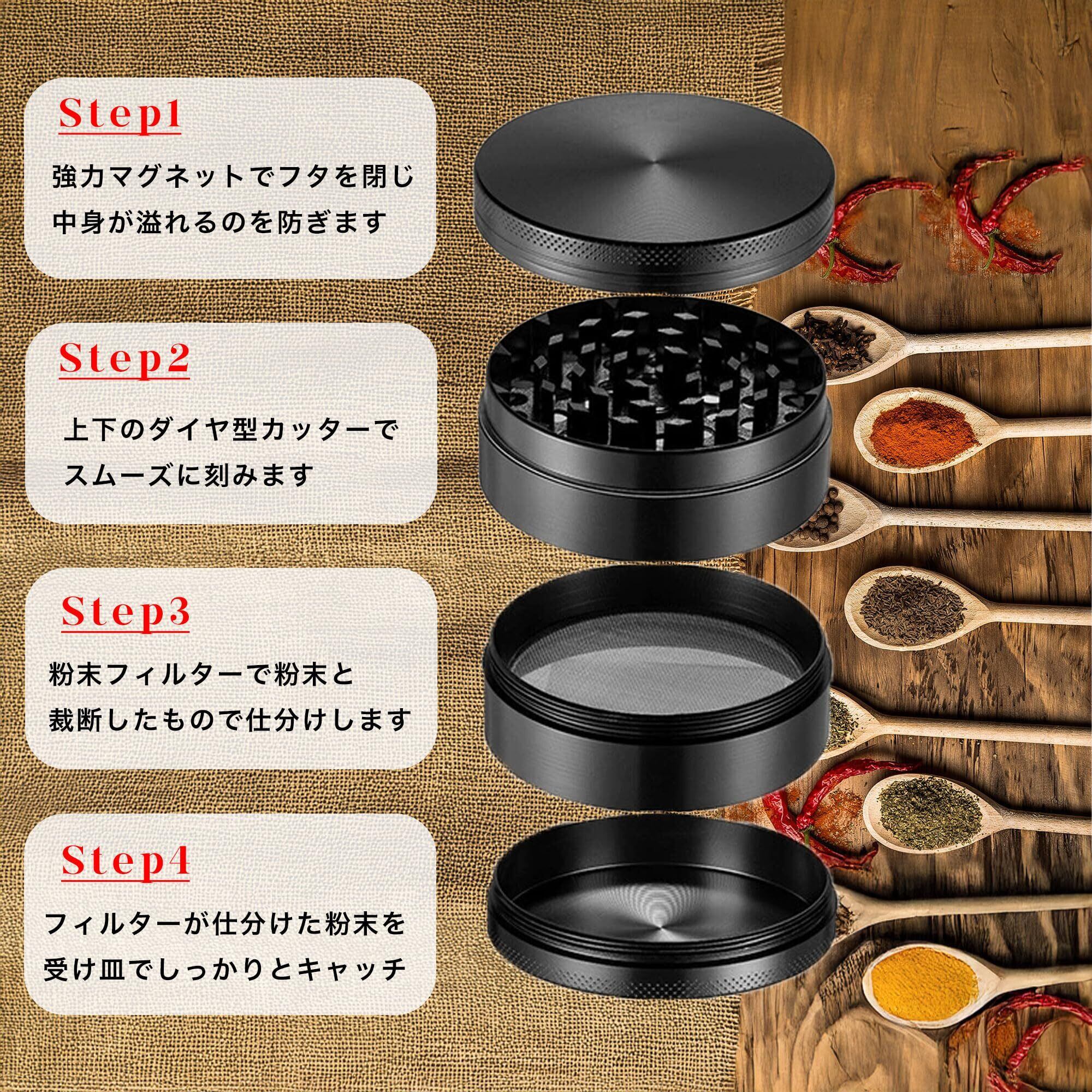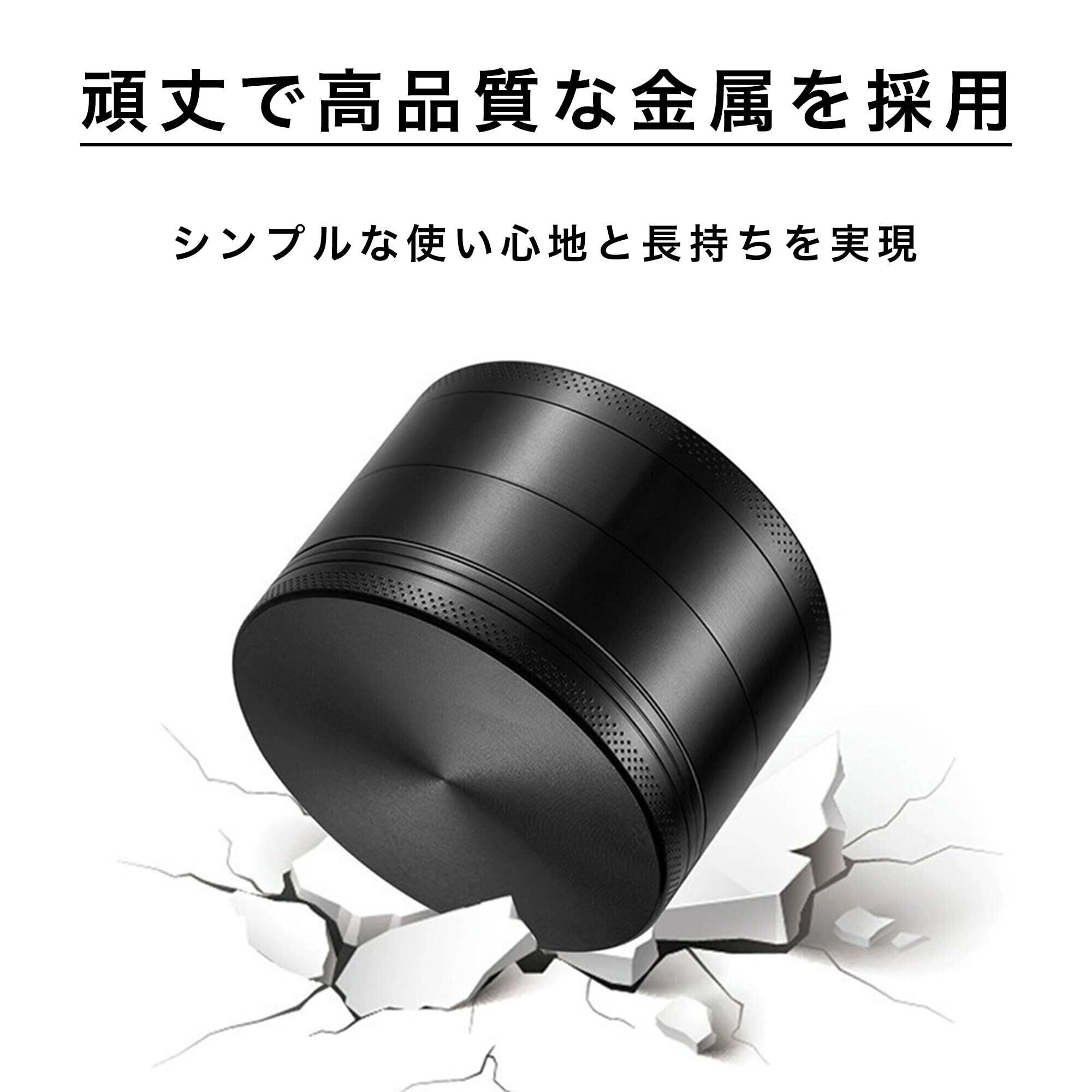 グラインダー タバコ用 煙草グラインダー マルチ ハーブミル スパイスミル パイプ用の葉 たばこ葉 ドライハーブ用 4層式 亜鉛合金製 (ブラック)