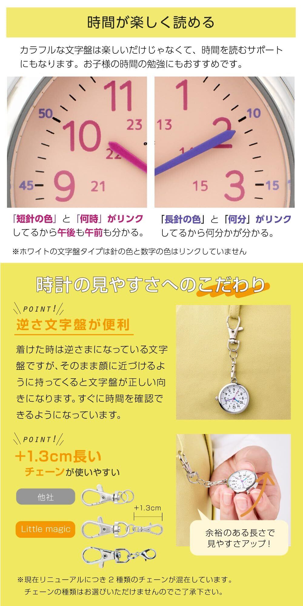 [リトルマジック]【時間確認が楽しくなる】【選べる6カラー】見やすくて軽くて使いやすい 懐中時計 時計 ナースウォッチ コロレキッズPS(ピンクシャーベット)