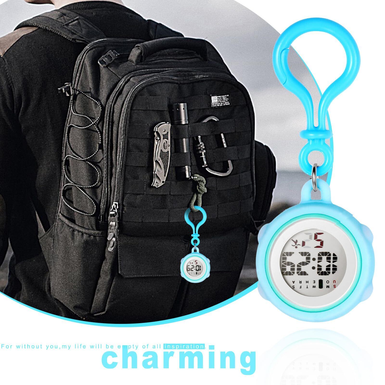 カラビナウォッチ キーホルダー 時計 デジタル シリコン: クリップウォッチ ストップウォッチ カレンダー 目覚まし時計 防水 ポケットウォッチ おしゃれ - 登山 遠足 ランニング スポーツ アウトドア アクセサリー
