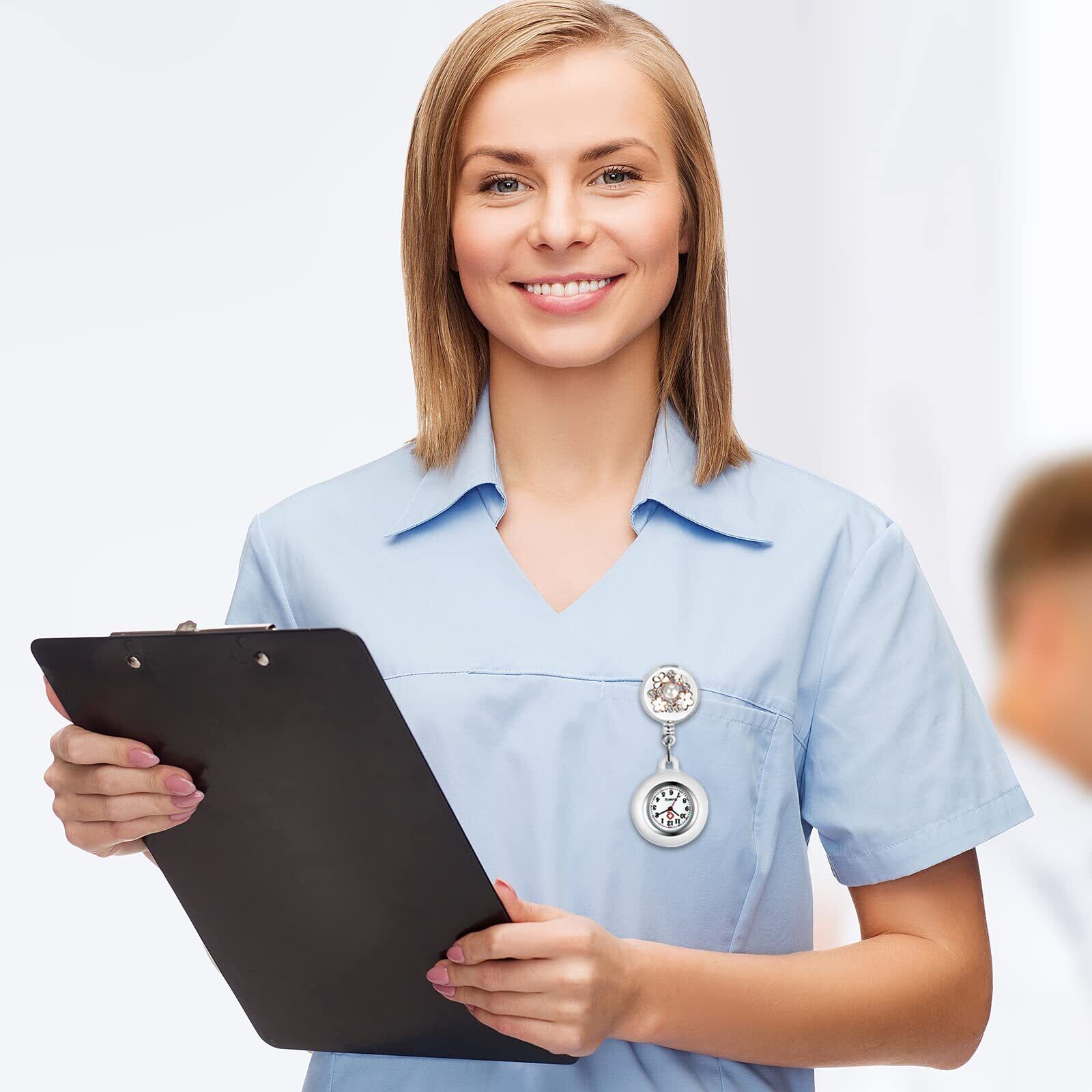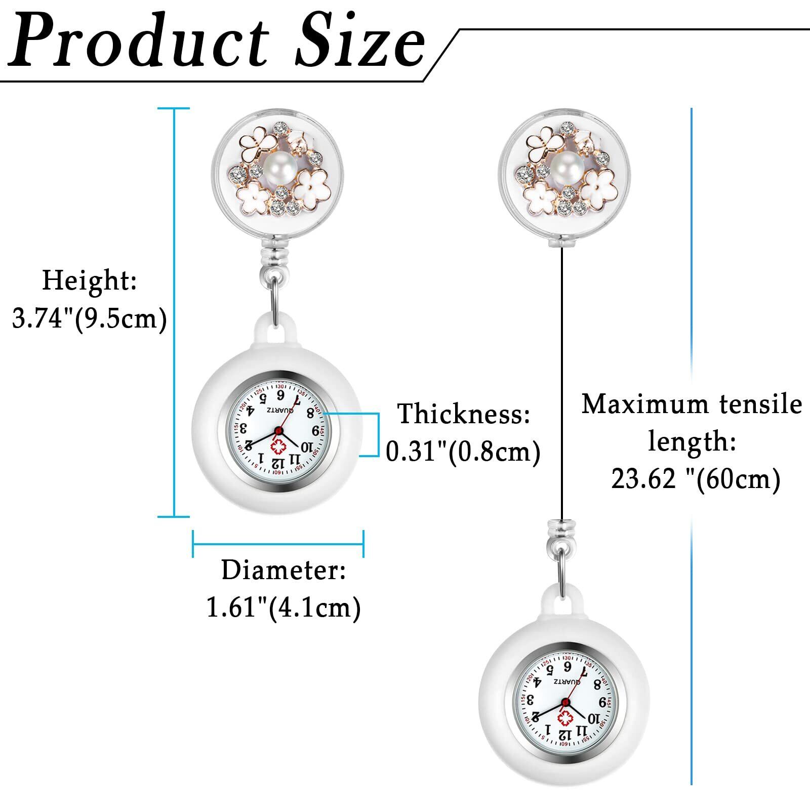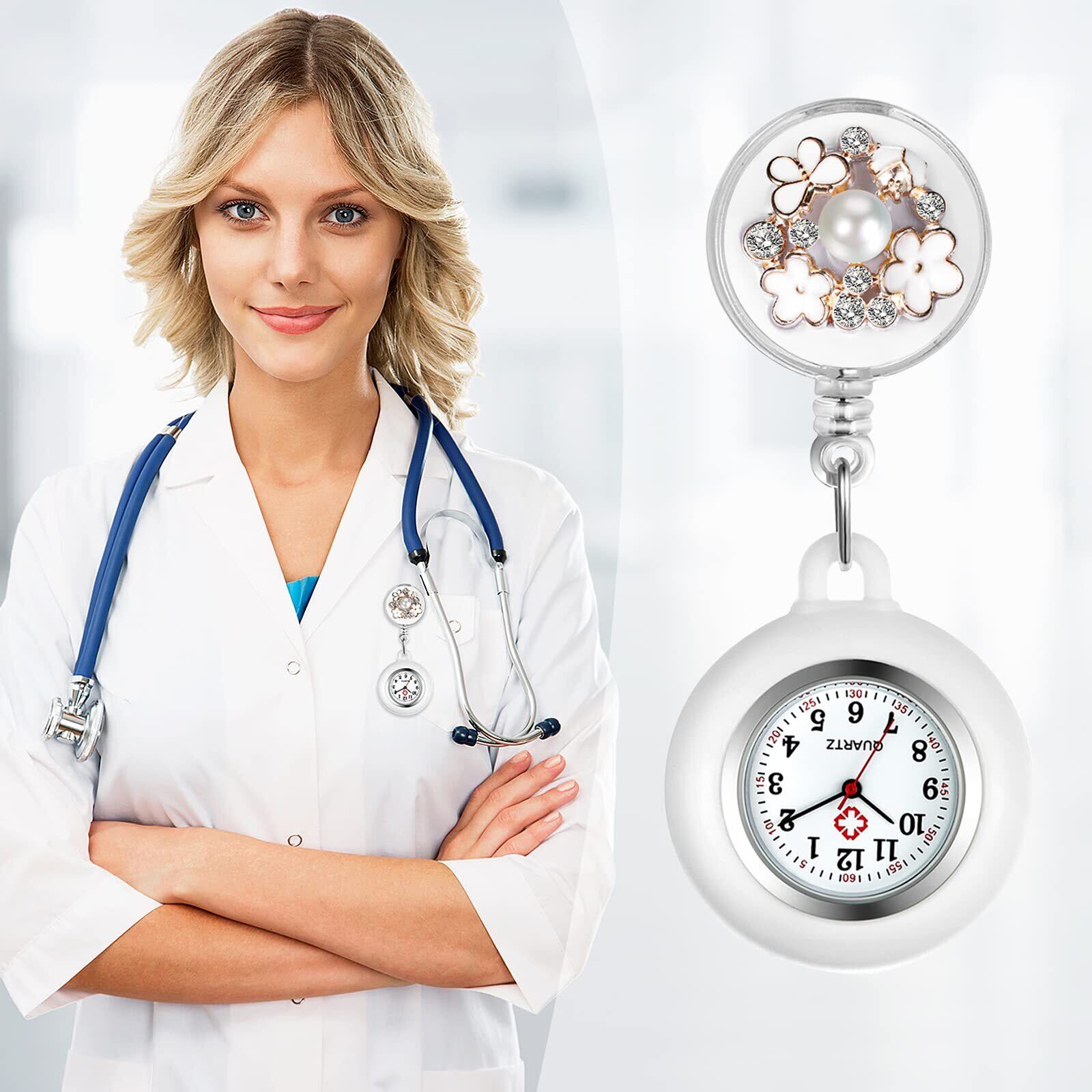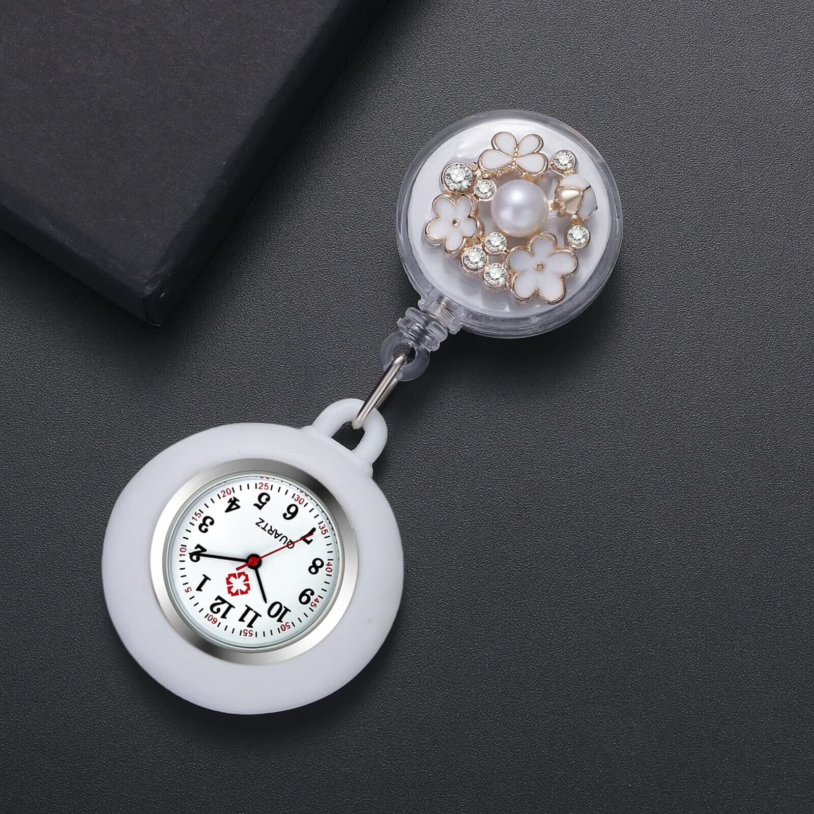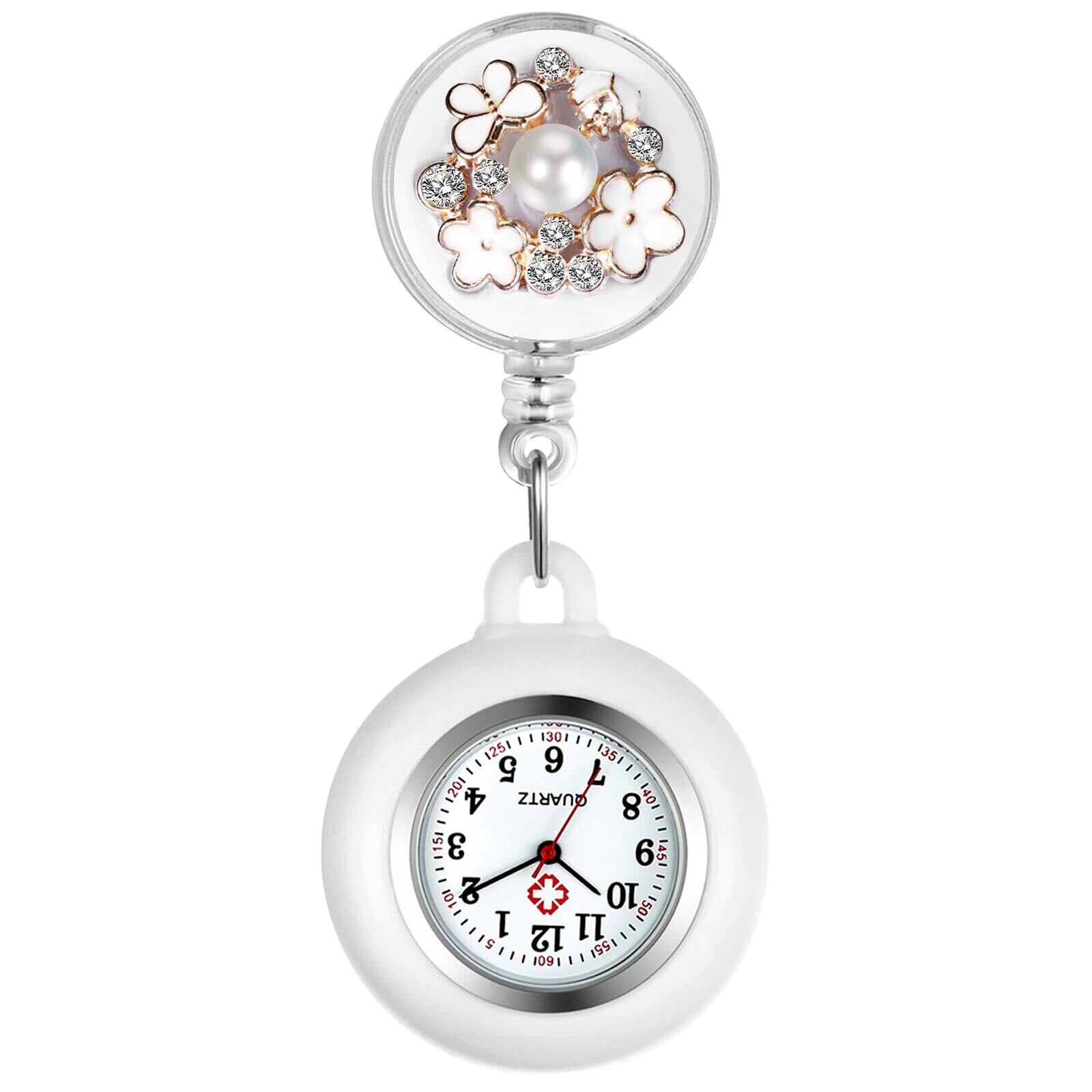 Lancardo ナースウォッチ 時計 看護師 クリップウォッチ シリコン: 伸び縮み パール お花 レディース 懐中時計 アナログ 時計 ポケットウォッチ - 誕生日 記念日 母の日 看護の日 プレゼント最適