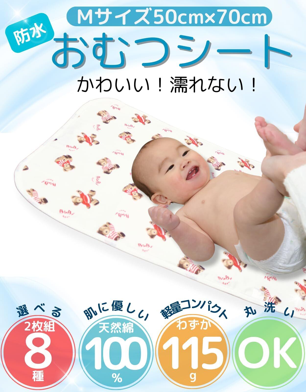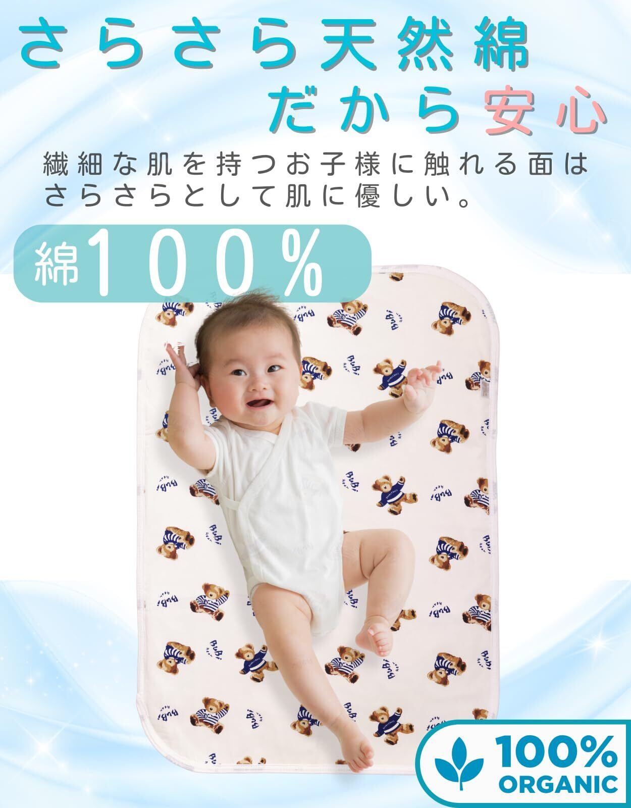 【赤ちゃんにやさしい素材】3層構造からなり素材の持つ性能が生かされた赤ちゃんのお肌にやさしいおむつかえシート 防水 も優れています。