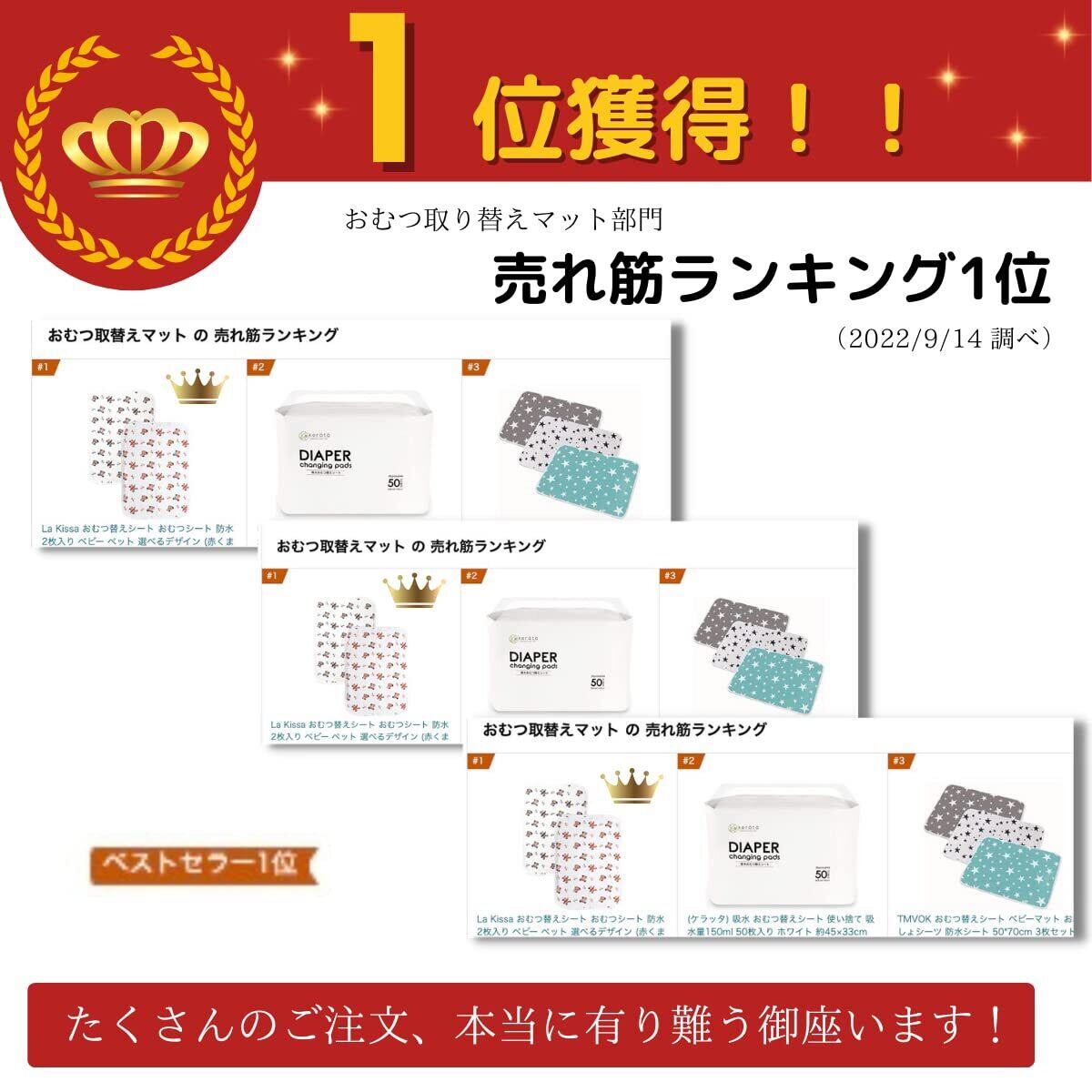 La Kissa おむつ替えシート おむつシート 防水 2枚入り ベビー ペット 選べるデザイン (赤くま+青くま)