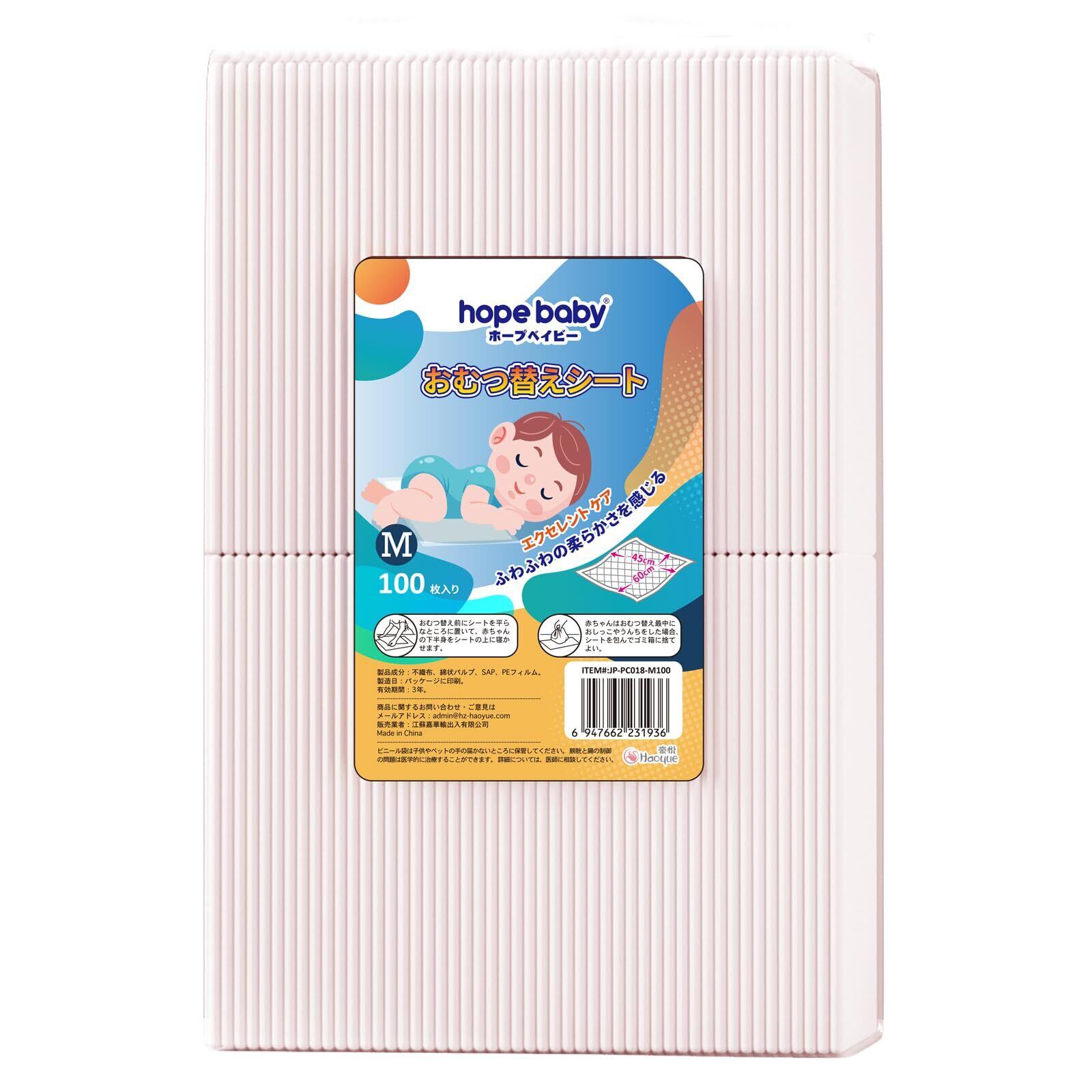 HOPE BABY オムツ替えシート 使い捨て 45×60cm 100枚入り おむつかえ オムツシート 大判サイズ 厚手 吸収ポリマー 持ち運び便利 片付け簡単 ホワイト