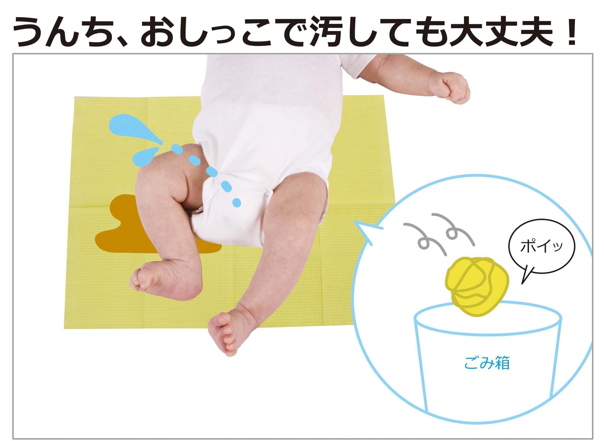 ●ゆるゆるうんちのおむつ替えや、おでかけ時に便利な使い捨てのおむつ替えシートです。