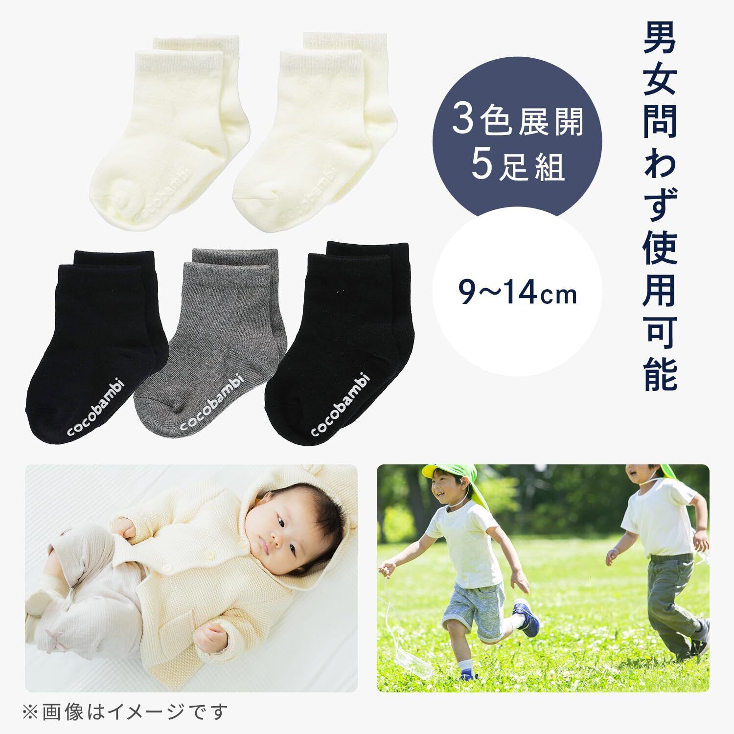 Filloie フィロワ 5足組ベビー靴下 無地クルー丈ソックス スベリ止め付 9-14センチメートル (x 5) 5足組 88-65-1163