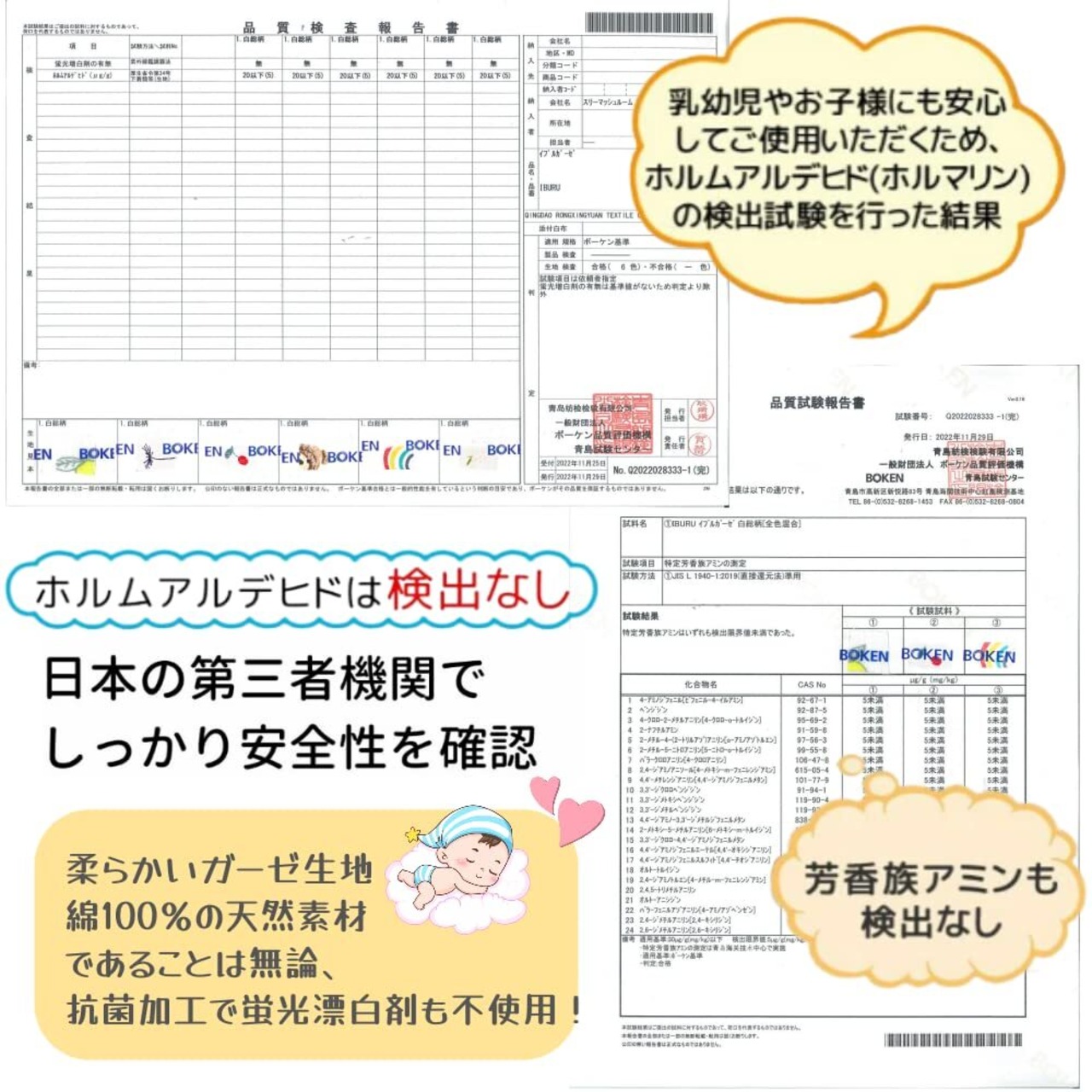 【4重ガーゼ&天然綿100%】天然綿100%のガーゼハンカチは安全な天然素材コットンのガーゼでできているので、デリケートなベビーや子どもにも安心に使えます。