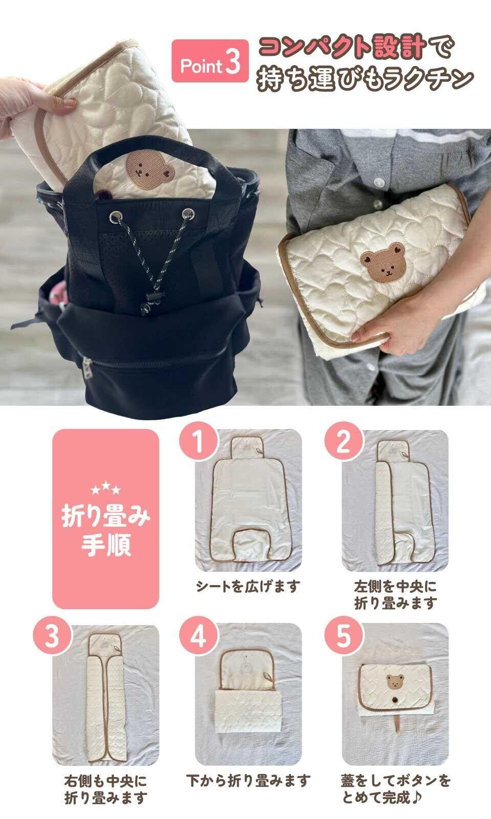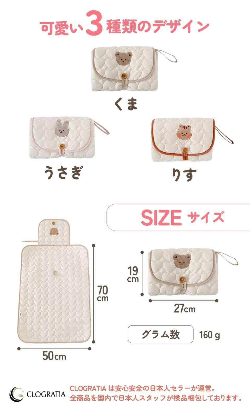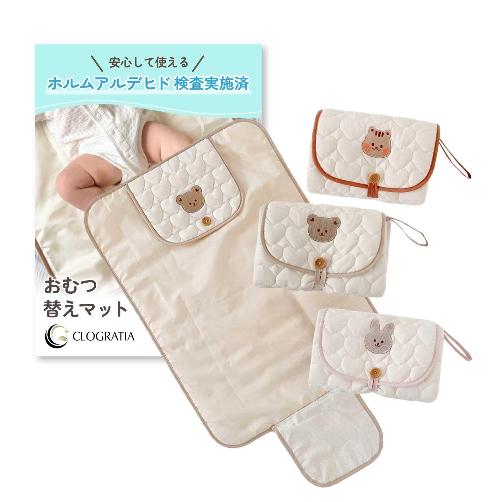 CLOGRATIA おむつ替え マット おむつ替え シート おむつかえシート 防水 コットン 赤ちゃん肌にやさしい 携帯用 コンパクト 折りたたみ かわいい (オフホワイト(うさぎ), ワンサイズ)