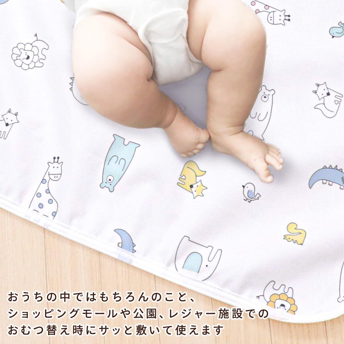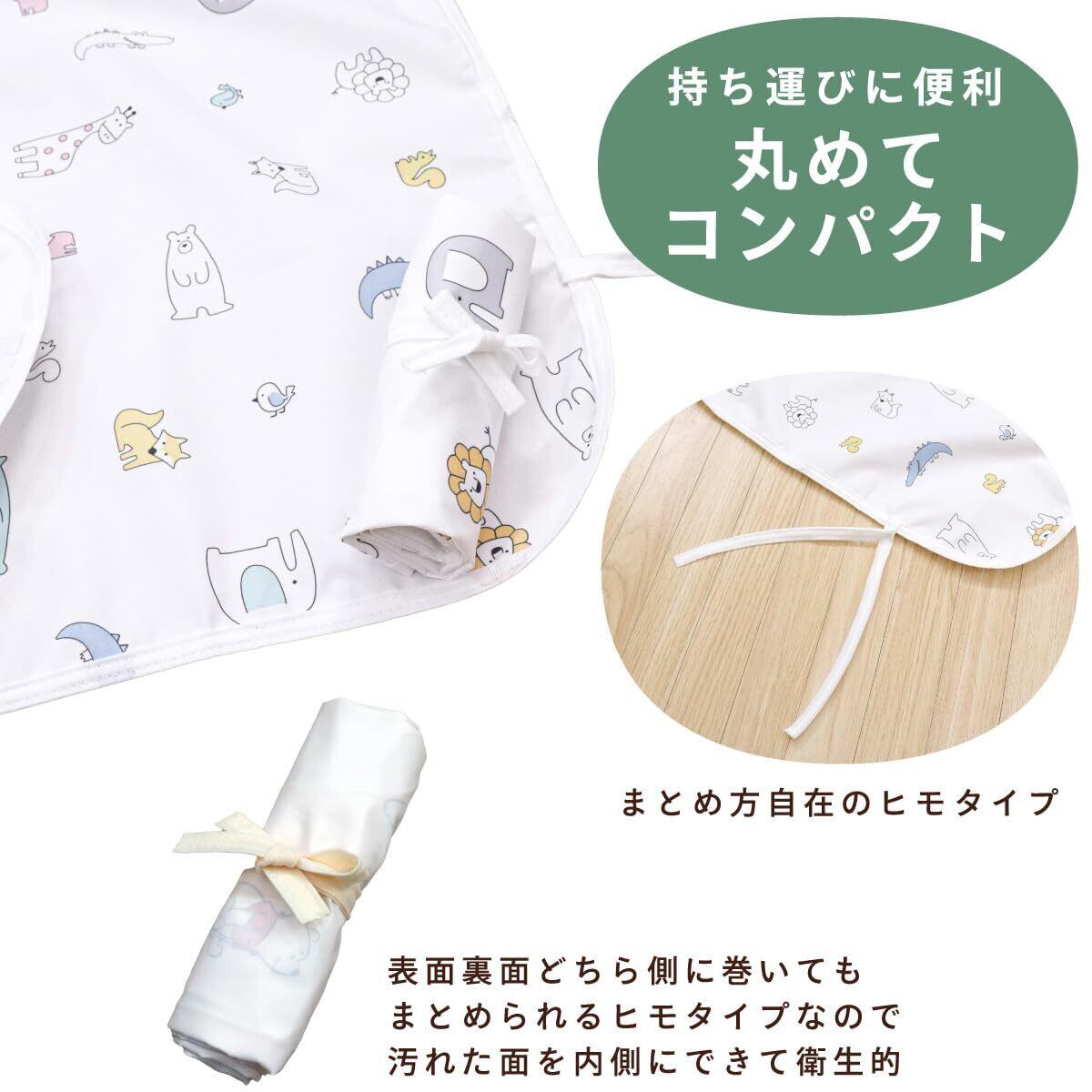 バッグにポンッ!丸めてコンパクトにできるので荷物がかさばらず、ママに大好評外出先でのおむつ替え時に必須のアイテムです。