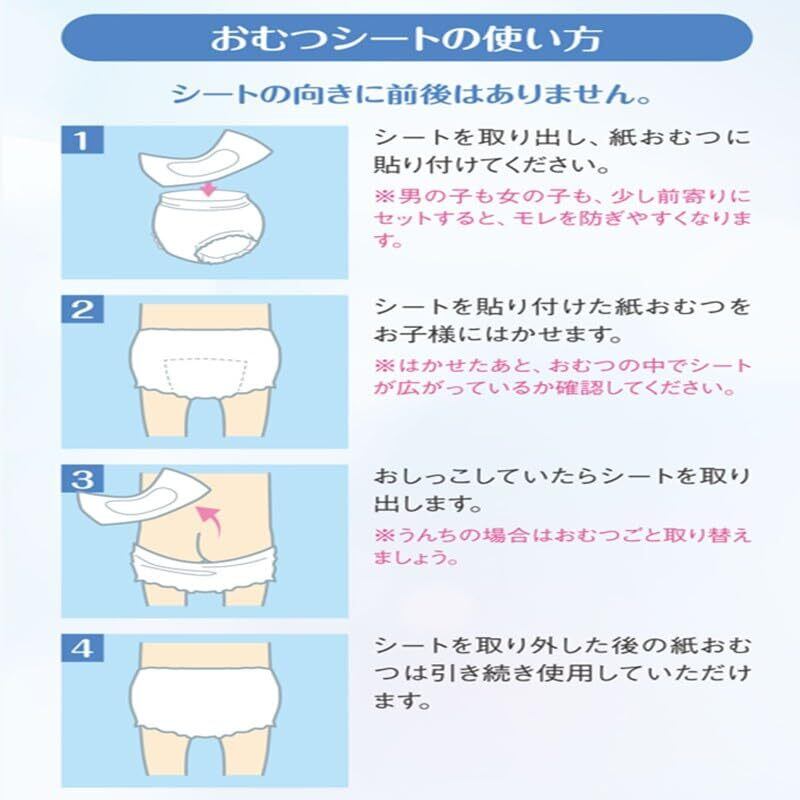 おしっこをしてもシートをサッと外すだけでおむつはそのまま。