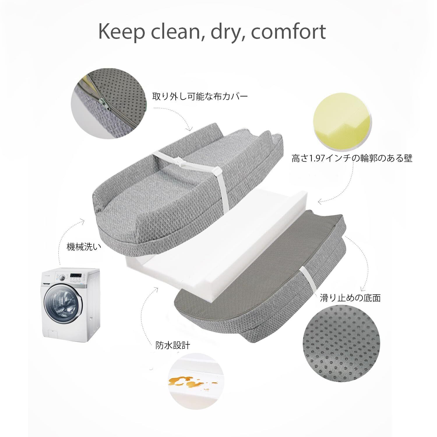 【幅広いシーンで】衣装整理・おむつ交換・着替え・ベッドにも置けて様々な場面で活躍します。背中への負担を軽減させますので、ママにとってより快適で便利な生活をサポートします。赤ちゃんをマッサージしたり一緒に遊んだりすることもできる多機能ステーションです。お子様が成長された際には、このクッションはペット用の快適な寝床として活用いただけます。