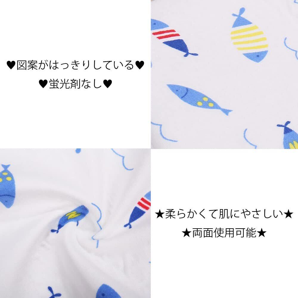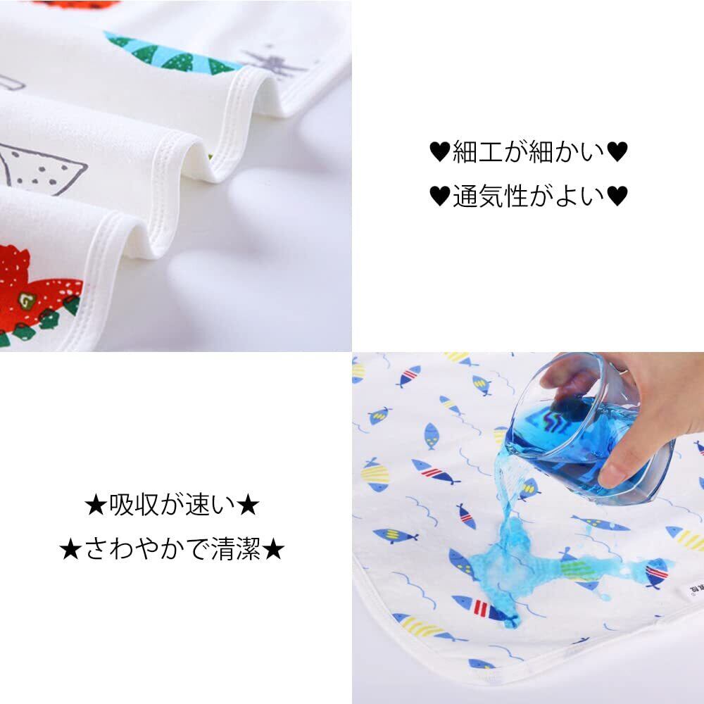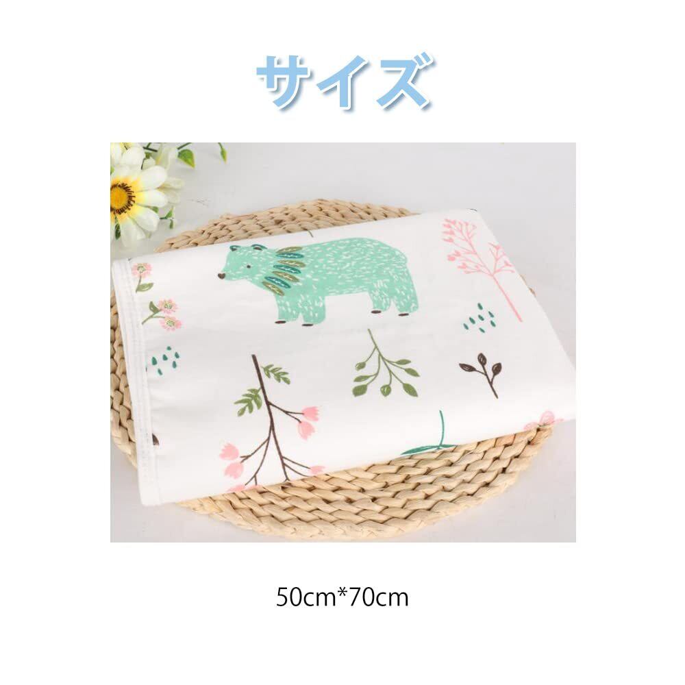 サムコス おむつシート ベビーマット 2枚セット 綿100% 防水 吸水 肌触り良い 持ち運び便利 おねしょシーツ 介護 ベビー用品 家用 外出用 50cm*70cm (青い魚+緑のクマ)