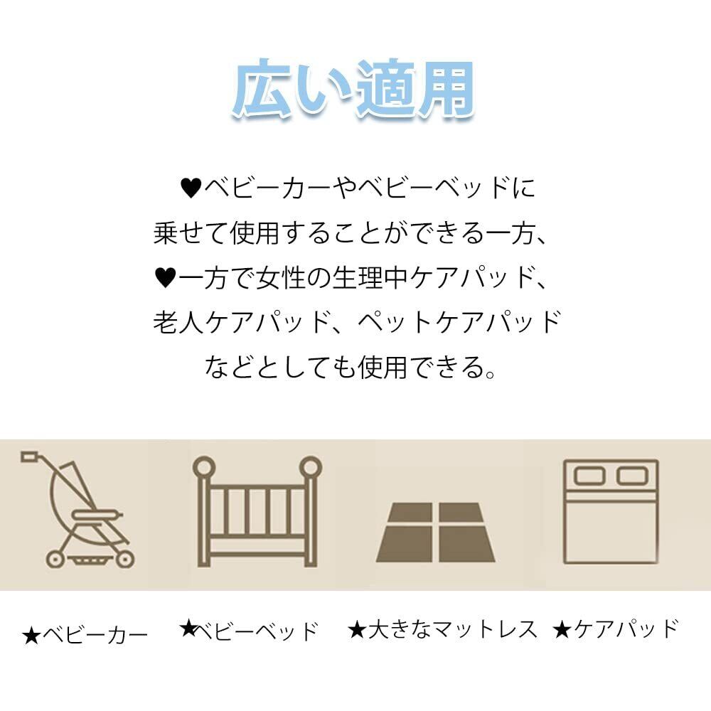 広い適用範囲:ベビーベッドやベビーカーの上に置いて赤ちゃんの尿隔離マットとして使用するのに最適で、そのほか、女性の生理中のケアマット、老人ケアマット、ペットのケアマットとしても使用できます。