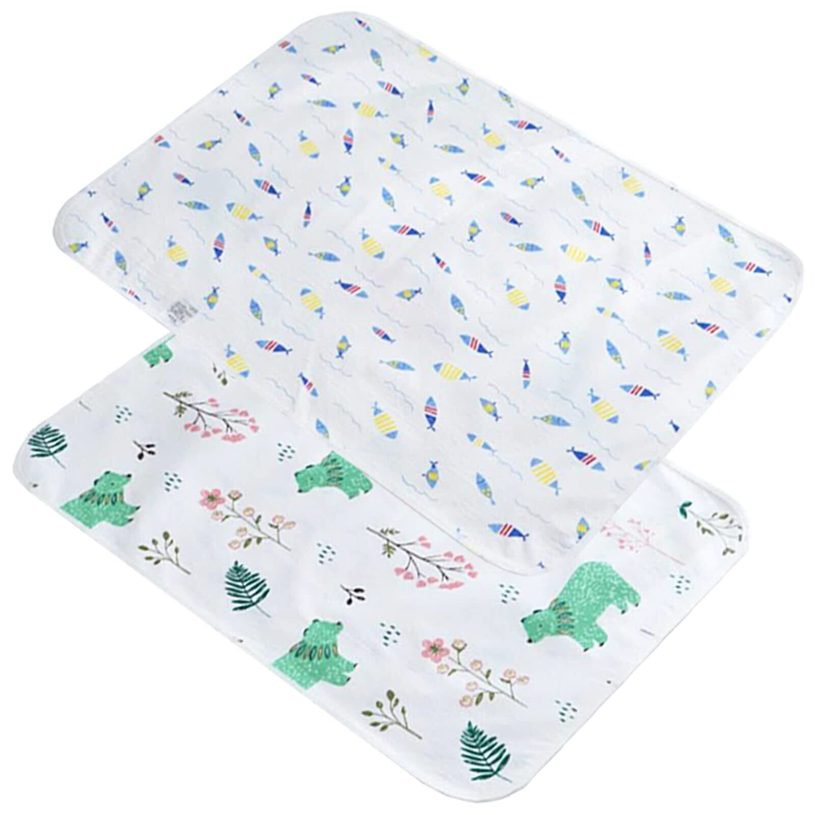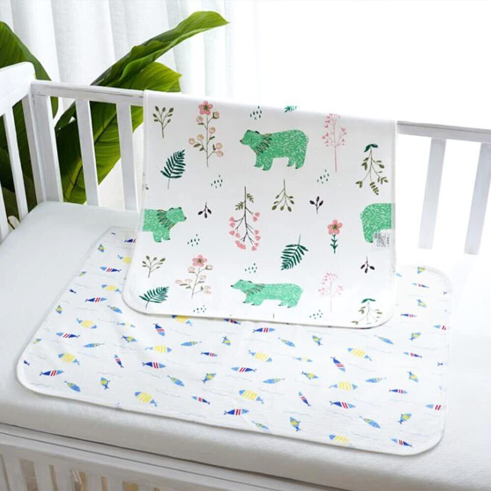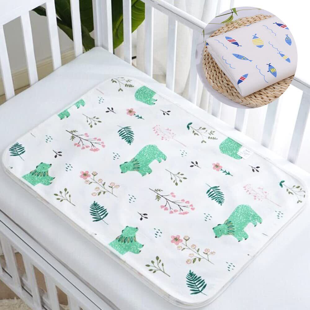 【2022最新】サムコス おむつシート ベビーマット 2枚セット 綿100% 防水 吸水 肌触り良い 持ち運び便利 おねしょシーツ 介護 ベビー用品 家用 外出用 50cm*70cm (青い魚+緑のクマ) | 無意味ステッカー