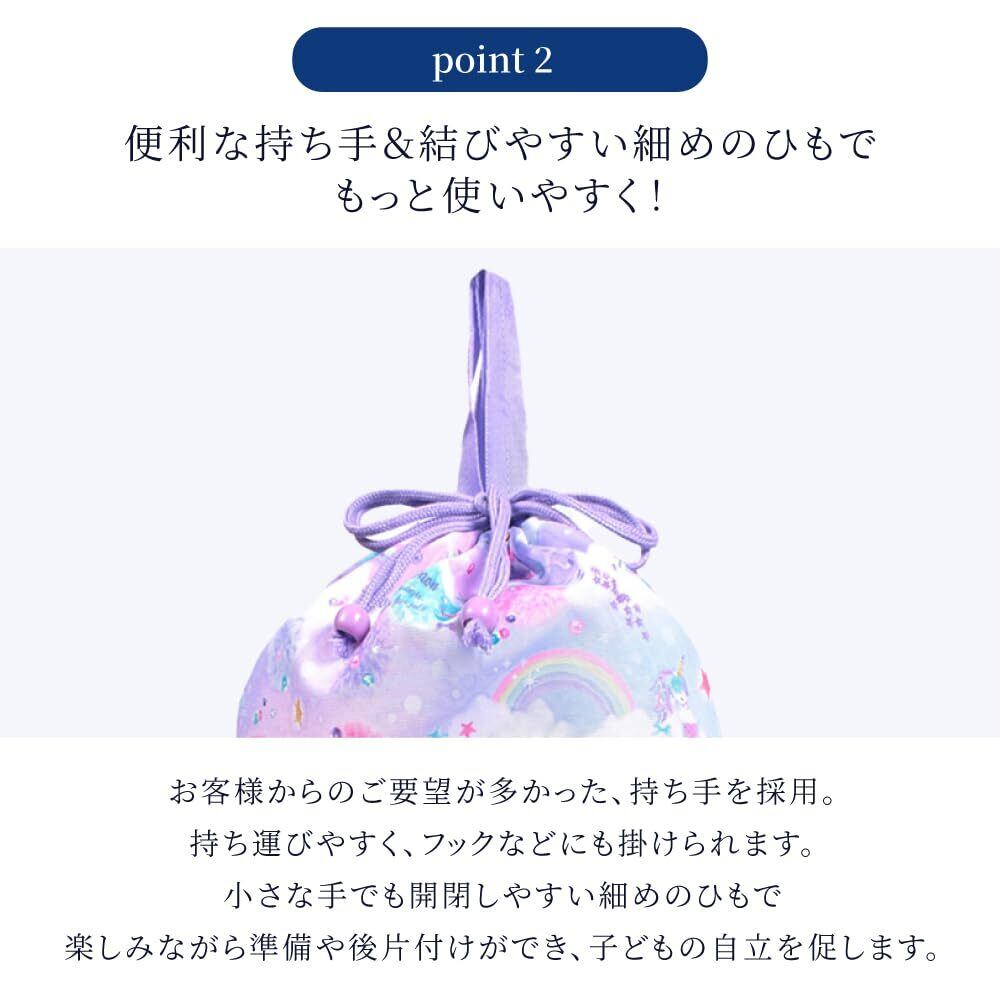 毎日清潔、軽くてやわらか、ゆったりサイズの巾着袋。洗濯などによる摩擦に強く耐久性に優れているので、毎日清潔な状態を保つことができます。持ち手付きタイプは、お着換えやシューズ入れにもなり、持ち運びや収納にも便利。衣類を楽に出し入れできるゆったりサイズ。お洋服をたたむのが少し苦手なお子様にも最適です。