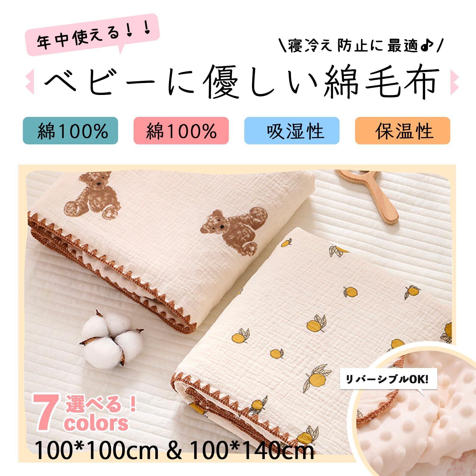 ベビー 綿毛布 赤ちゃん用 コットンケット 綿 ブランケット フランネル ガーゼ ベビー毛布 2サイズ 毛布 暖かい 寝冷え防止 キッズ 子供 お昼寝 保育園 ひざ掛け 出産祝い 100×140cm