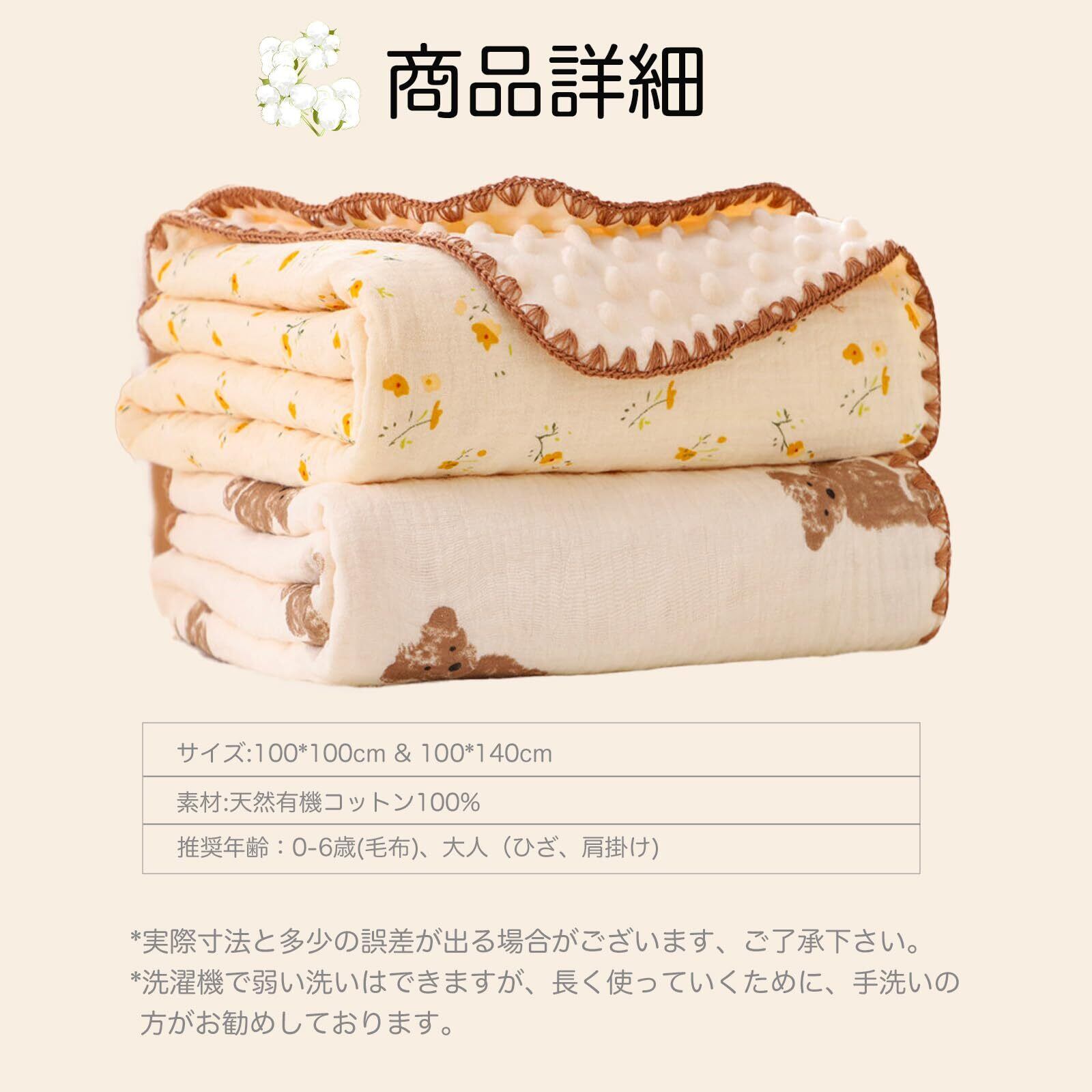 【両面デザイン】色々な使い方ができる、ガーゼ生地と毛布生地で気温によって掛けるのを変えれる。ガーゼ・通気性良い、乾燥しやすい、スーパーソフト。モコモコした優しい肌あたりで、汗をかいてもペッタリ肌に密着せず蒸れません。毛布素材の中でも上質なフランネル生地を採用しているので、肌ざわりはなめらかでふわふわずっと触っていたくなるような、気持ちよさにこだわりました。