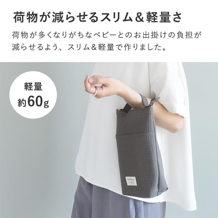 【荷物が減らせるスリムさ】 ベビーとのお出掛けはどうしても荷物が多くなってしまいますが、ちょっとでもママパパの負担が減らせるよう、マザーバッグに入れやすいスリムさで作りました。