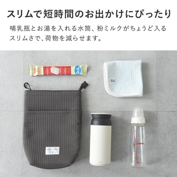 【ミルク1回分がぴったり入ります】 哺乳瓶とお湯を入れる水筒、粉ミルクといった1回分のセットがちょうど入るので、児童館やママ友とのランチなど、短時間のお出かけにぴったり。湯冷まし用のお水はママバッグに入れるか、外出先で調達すればミルクの温度調整もできます。
