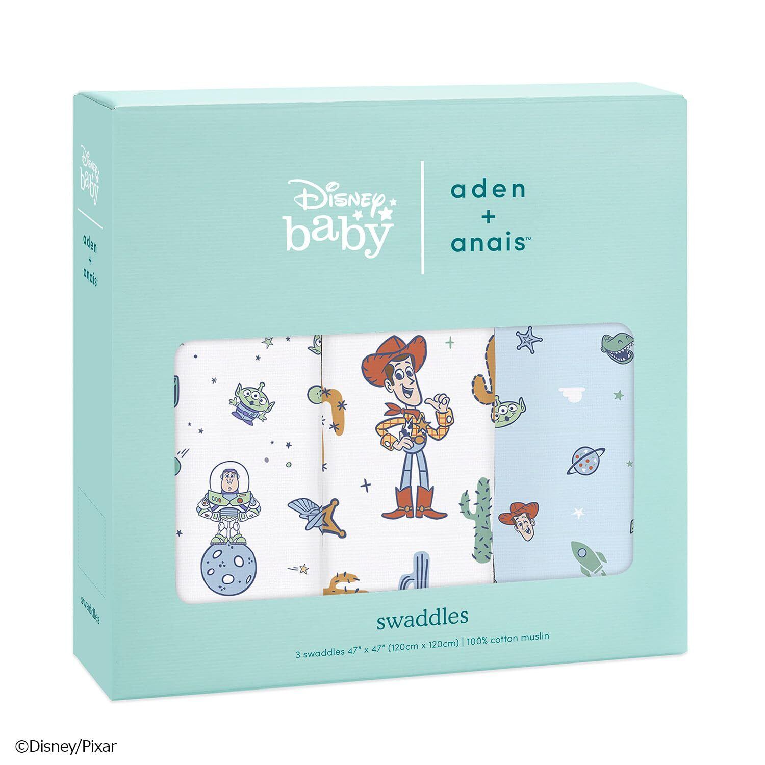 【特価商品】aden + anais エイデンアンドアネイ おくるみ 3枚セット ディズニー トイストーリー 120×120cm モスリンコットン スワドル 新生児 出産祝い SWADABDASWC30010DI | 無意味ステッカー